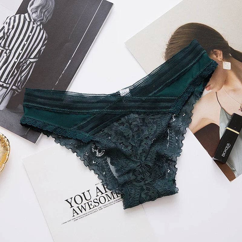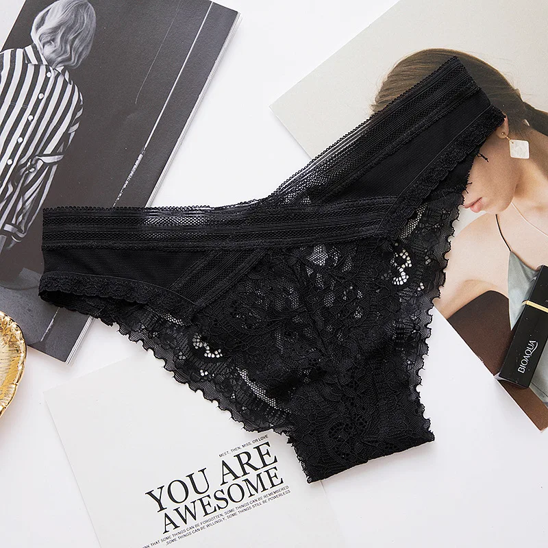 Трусы женские кружевные однотонные, пикантное хлопковое нижнее бель...