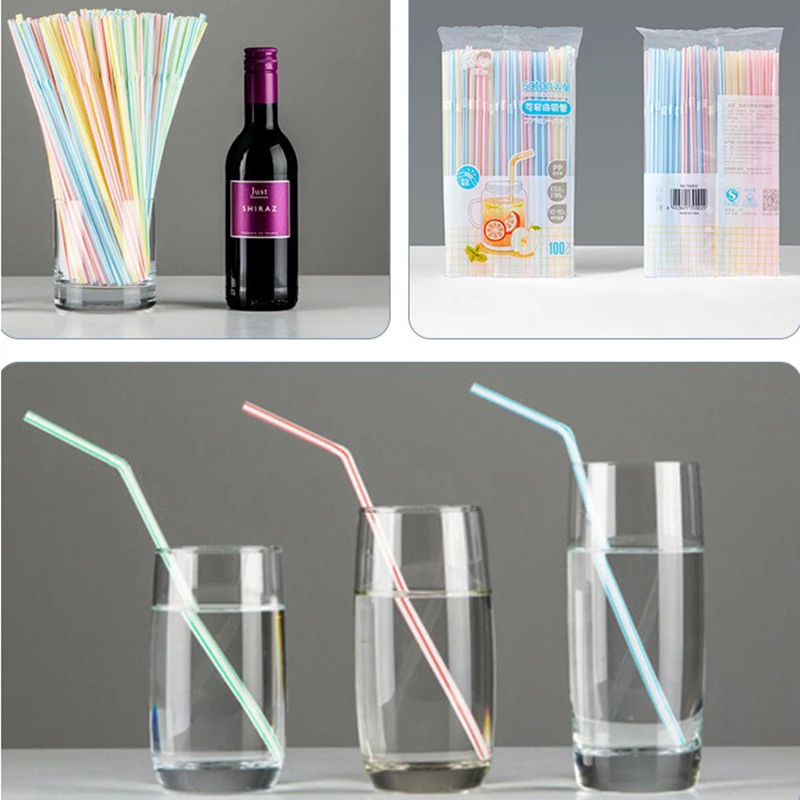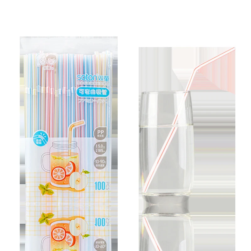 100 шт.пакет гибкие одноразовые полосатые Веселые соломинки для вечеринки гибкие аксессуары для сока товары для мероприятий