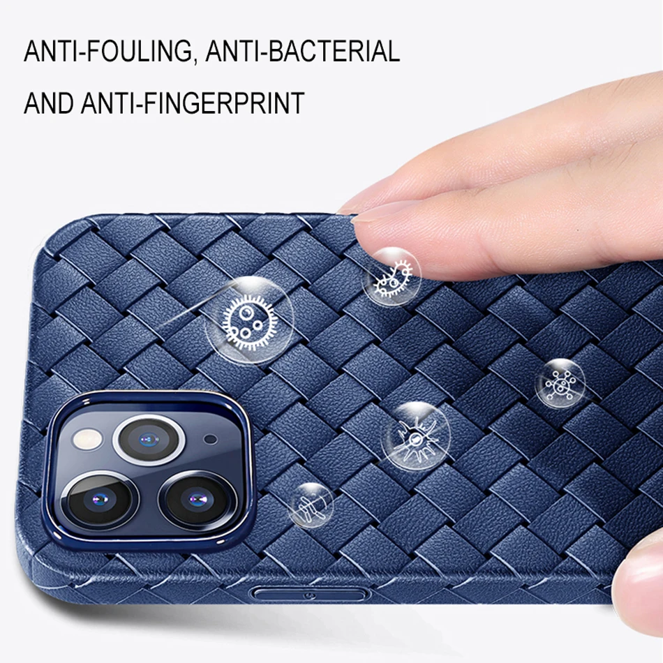 Feature 1Woven Leather Case For iPhone 13 12 11 Pro Max XS X XR 7 8 Plus Capinhas