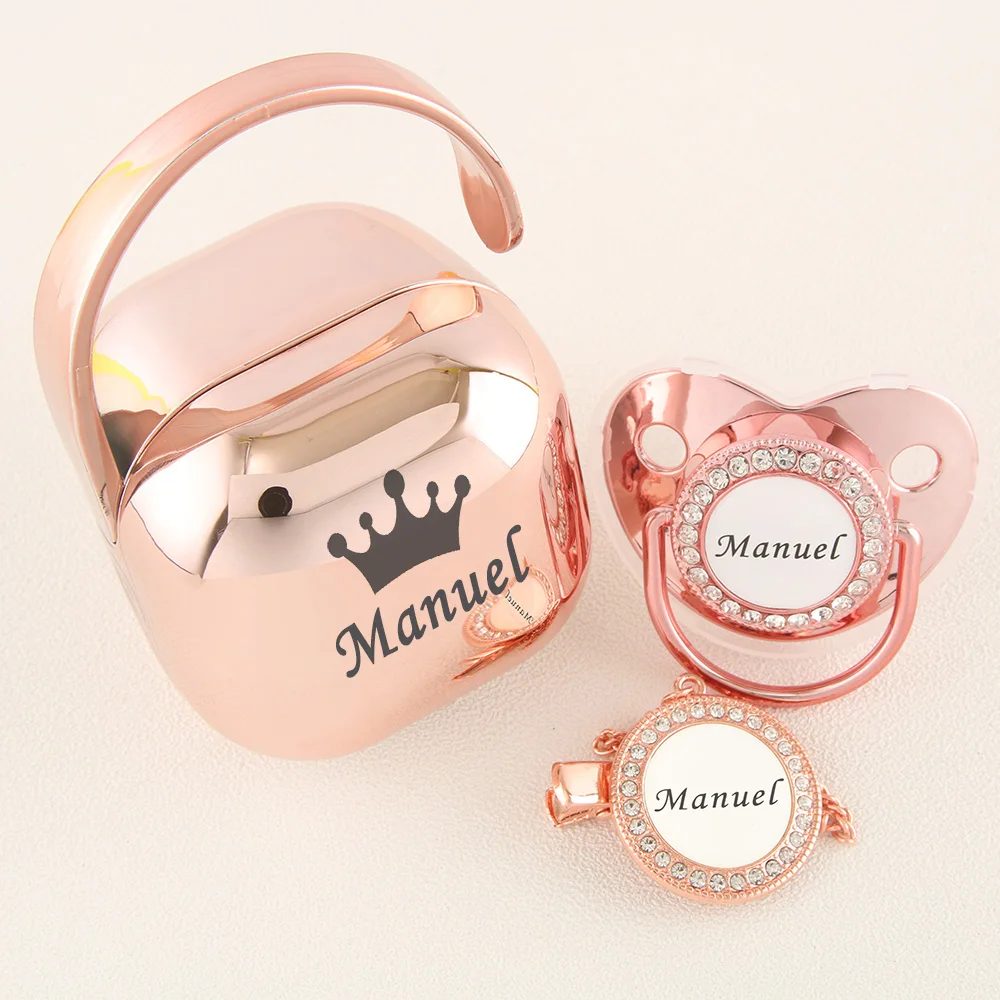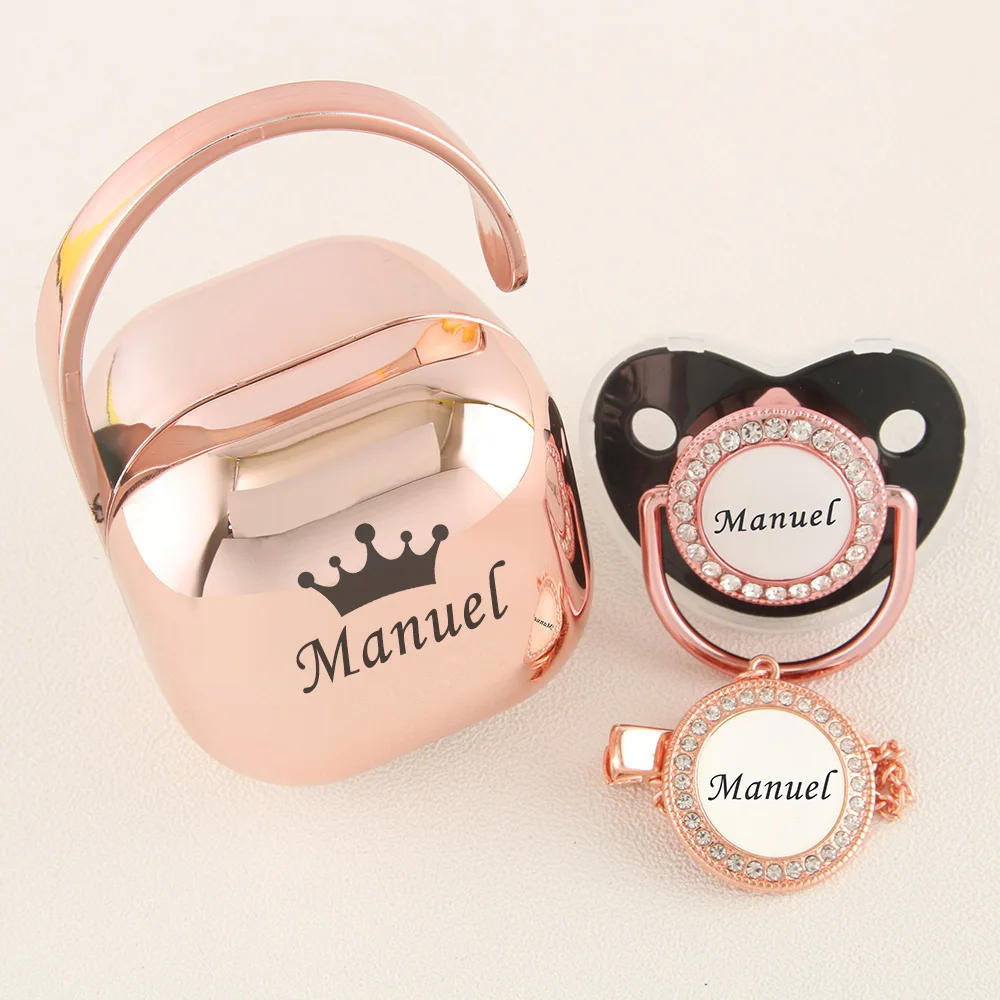 Роскошная Персонализированная детская пустышка с любым названием розового золота и зажимами, набор пустышек без BPA, пустышка, уникальный подарок для душа
