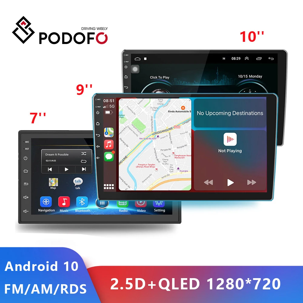 Автомагнитола Podofo 7 9, 10 дюймов, Android, мультимедиа, FMAMRDS, 8 + 128, 1280*720, для Toyota, Nissan, Honda, Volkswagen, Subaru, радар, Ford