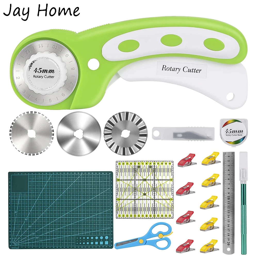 Набор для ротационной резки ткани 45 мм, набор для резки с ковриком для резки, ножом для рукоделия, 3 сменных лезвия и линейкой для лоскутного шитья