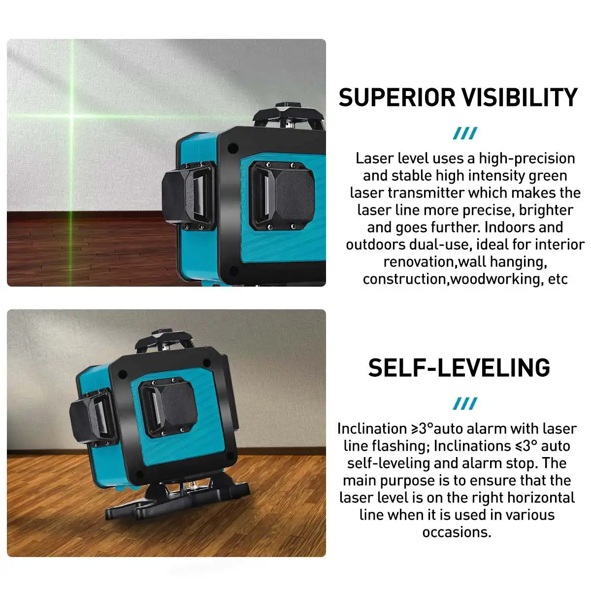 9. ± 3 ° автоматическая функция самовыравнивания. Звуковое предупреждение при превышении диапазона автоматического выравнивания.