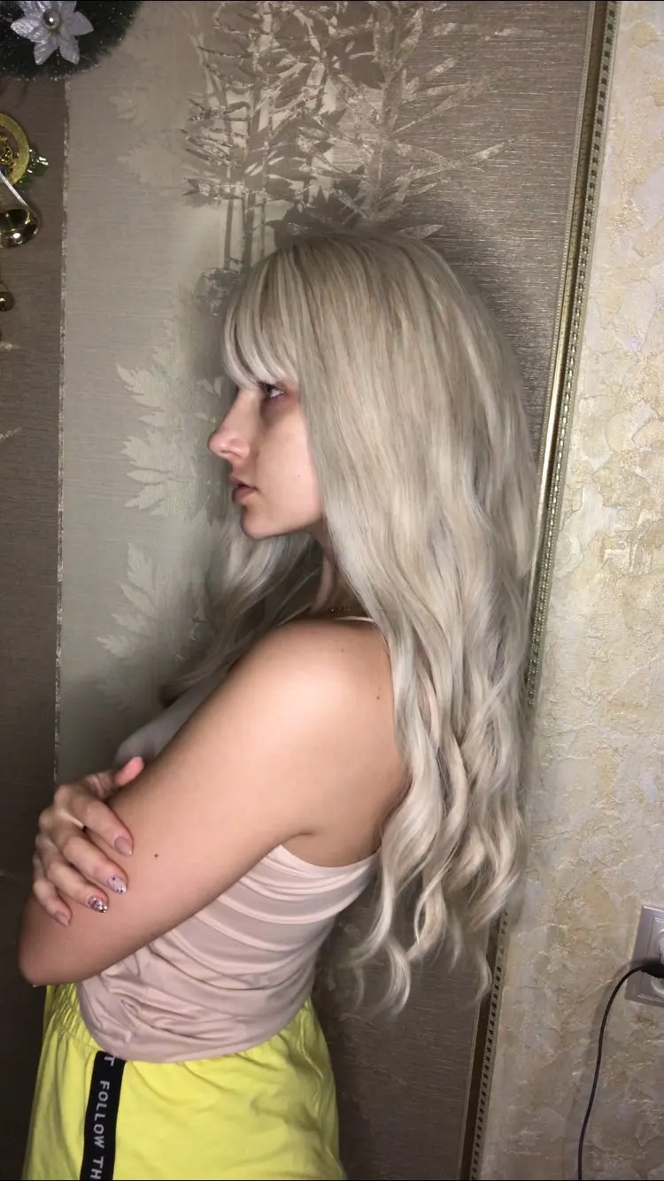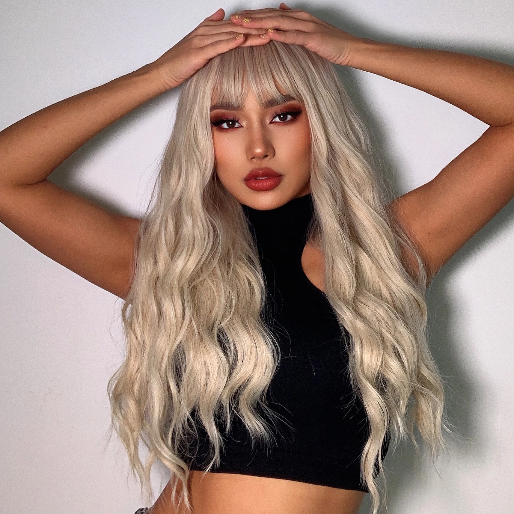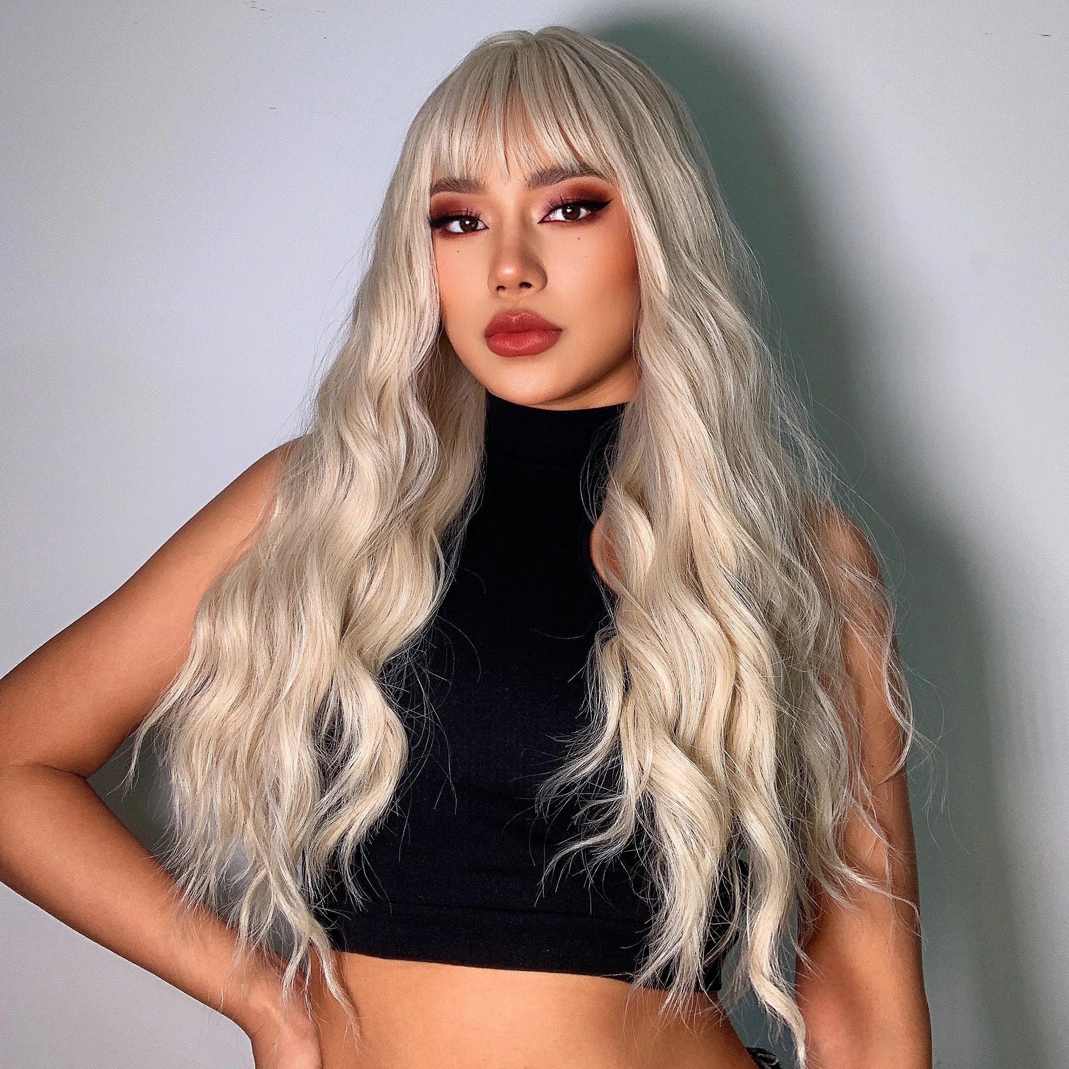Парики женские Платиновые светлые волнистые с челкой, термостойкие ...