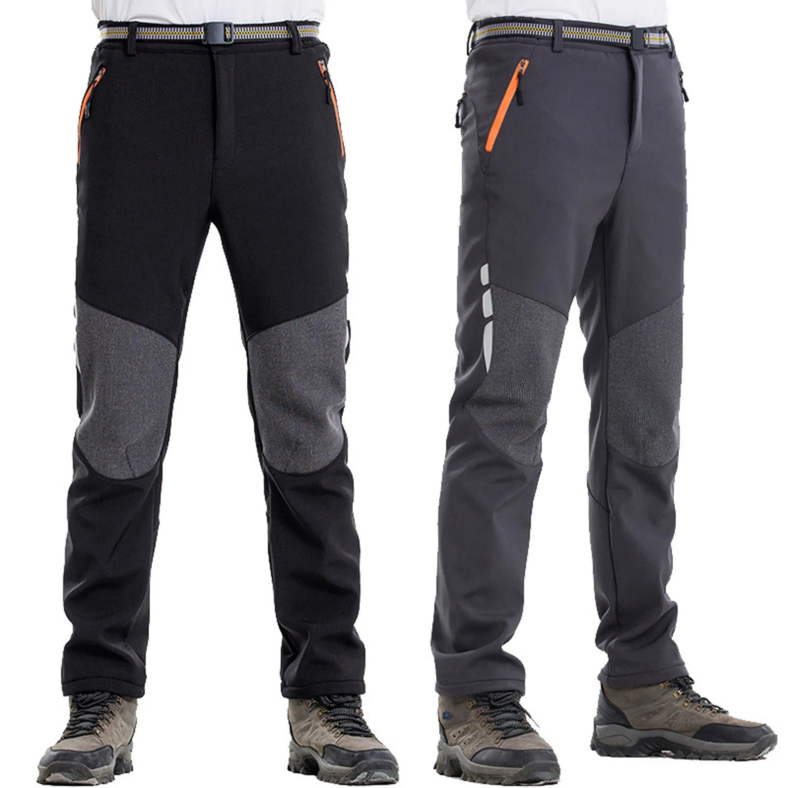 Светоотражающие мужские зимние походные брюки, мужские теплые флисо...