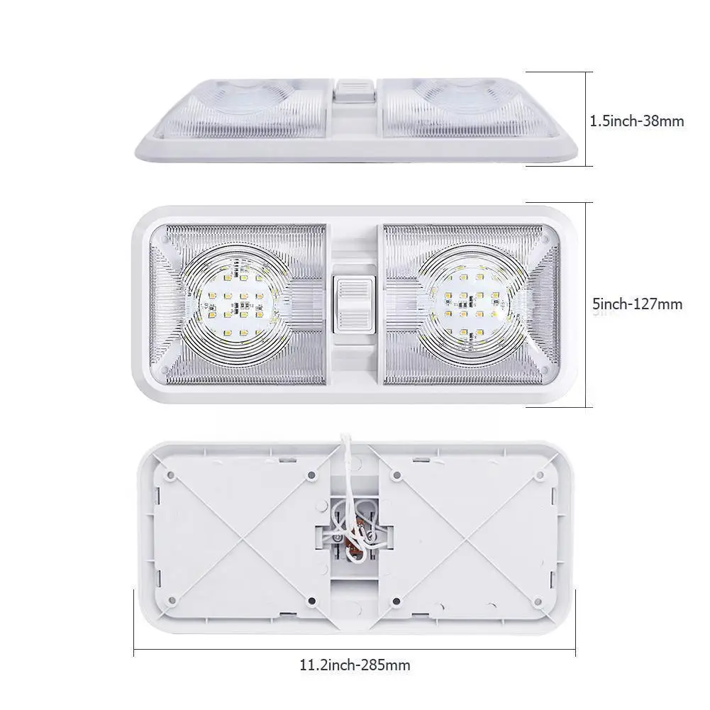12V 48LED интерьер двойной купол потолочный светильник для RV лодки для кемпера трейлераОсобенности:-100% абсолютно новый anfd высокого качества.-48 высокомощных светодиодов 2835 SMD.-Энергосбережение и защита окружающей среды, используя яркий светодиодный светильник в качестве источника.-Приложения включают 12 вольт постоянного тока рекреационных транспортных средств.-Двойной купольный Светильник поставляется с двумя клиновидными панелями T10: 2x275 люменов, светодиодный светильник.Встроенный 3-позиционный переключатель (для того, чтобы использовать один или обе стороны из светильник приспособление).Спецификация:Материал: пластикЧехол Цвет: белыйСветильник Цвет: 4500K естественный белыйКоличество СВЕТОДИОДНЫЙ: 48 шт. 2835 SMD/каждый светильникНапряжение: 12 ВМощность: 6,5 WРазмер: 285*127*38 (мм) (LxWxT)Длина кабеля: прибл. 19 смПрименение: RV светильник на крыше, автомобильный интерьерный светильник s, автомобильный doom светильник s и т. Д.Количество: 1 шт.Примечание:1. (ВАЖНО) инструкции не включены. Настоятельно рекомендуется Профессиональная установка2. Перед оплатой внимательно проверьте таблицу размеров.3. Замеры сделаны вручную, поэтому возможны 0,5-1 дюйм разницы в связи с тем, что измерения выполнены вручную.(1 дюйм = 2,54 см)4. Цвет фактического товара может немного отличаться от изображения из-за различий в экране компьютера, спасибо за понимание.Посылка включает в себя:1 х Двойной купольный светильник