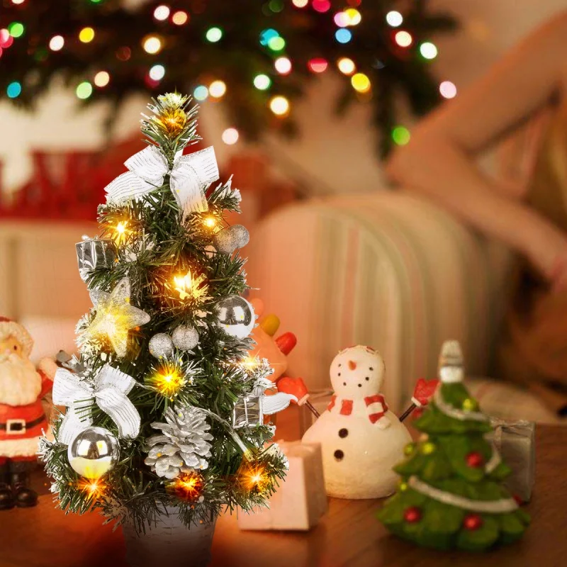 Настольная Рождественская елка, светодиодный светильник, мини-украш...