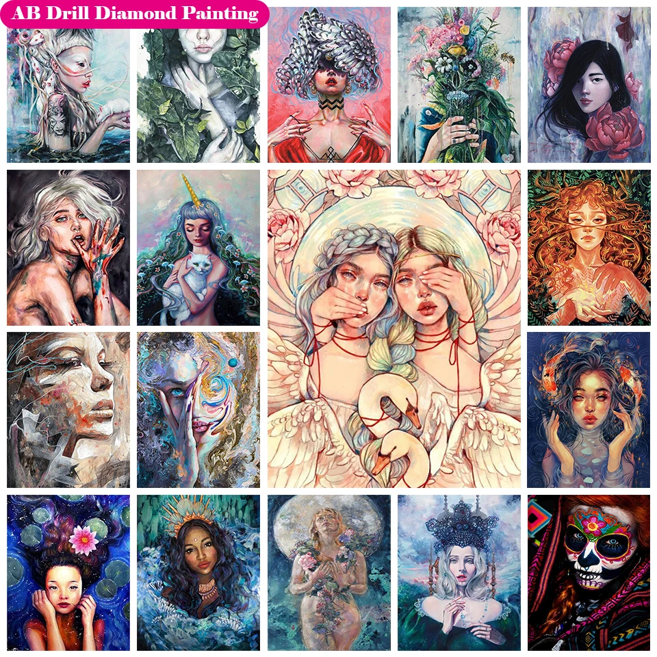 Алмазная живопись 5D с изображением ангела Девушки AB, животные, во...