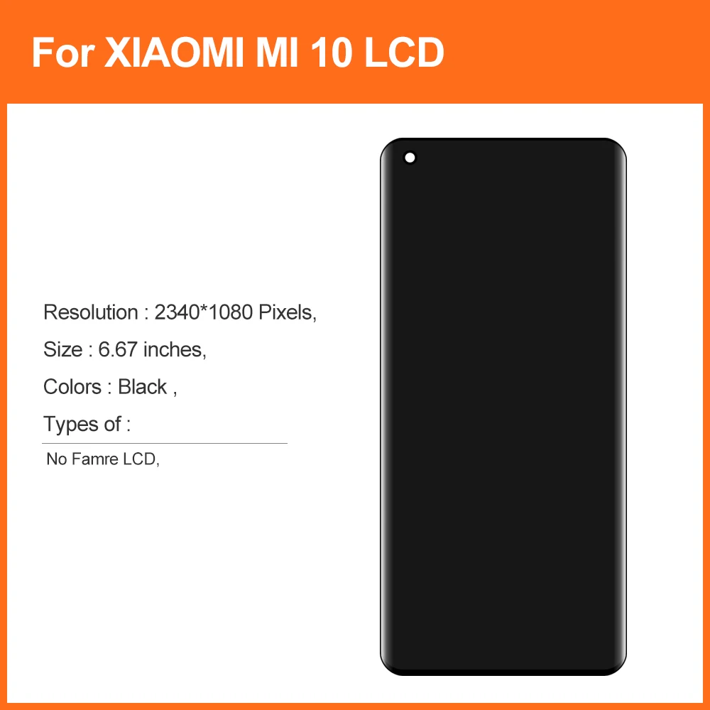 Оригинальный ЖК-дисплей 6,67 ''для Xiaomi Mi 10 Pro, сенсорный экран, дигитайзер в сборе с рамкой для Xiaomi Mi 10, зеркальный ЖК-экран