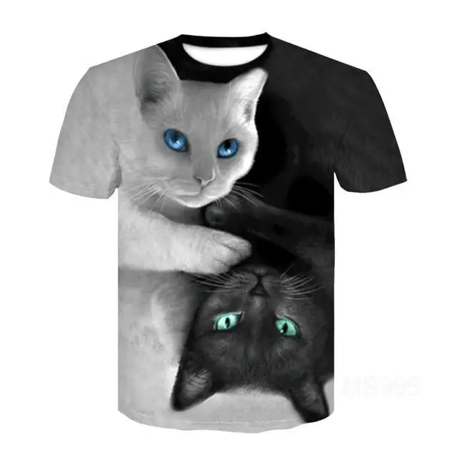 Футболка Мужскаяженская с 3D-принтом кота, модная Милая футболка с ...
