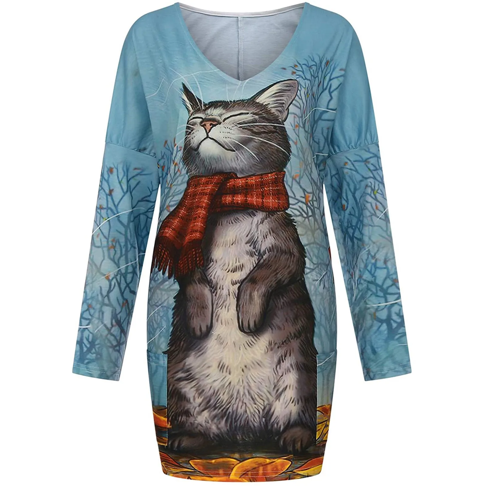 Женская Рождественская Толстовка с длинными рукавами и принтом, Повседневная Блузка