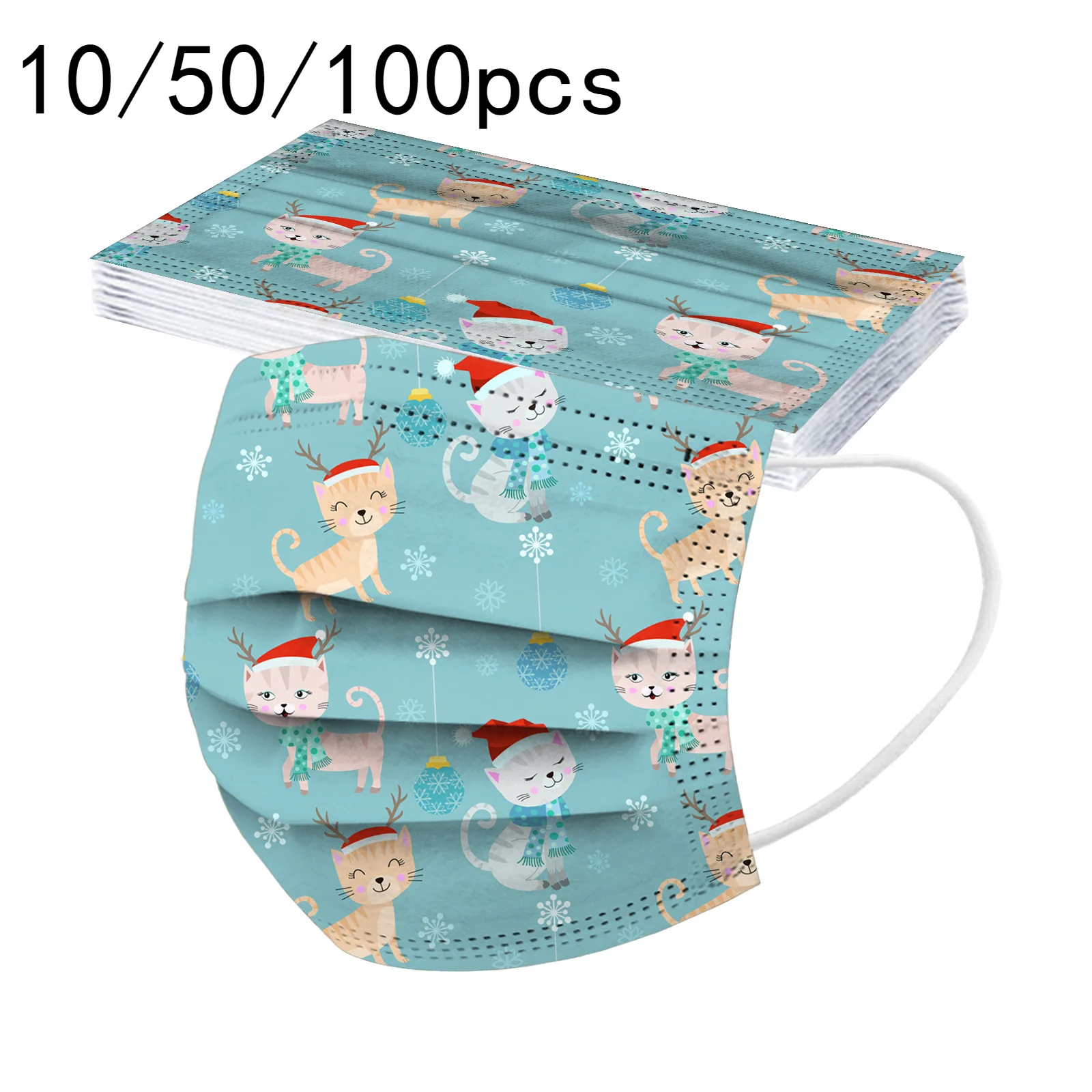Детская Рождественская одноразовая маска, одноразовая маска для лица, Ушная петля, маска, 10 шт.