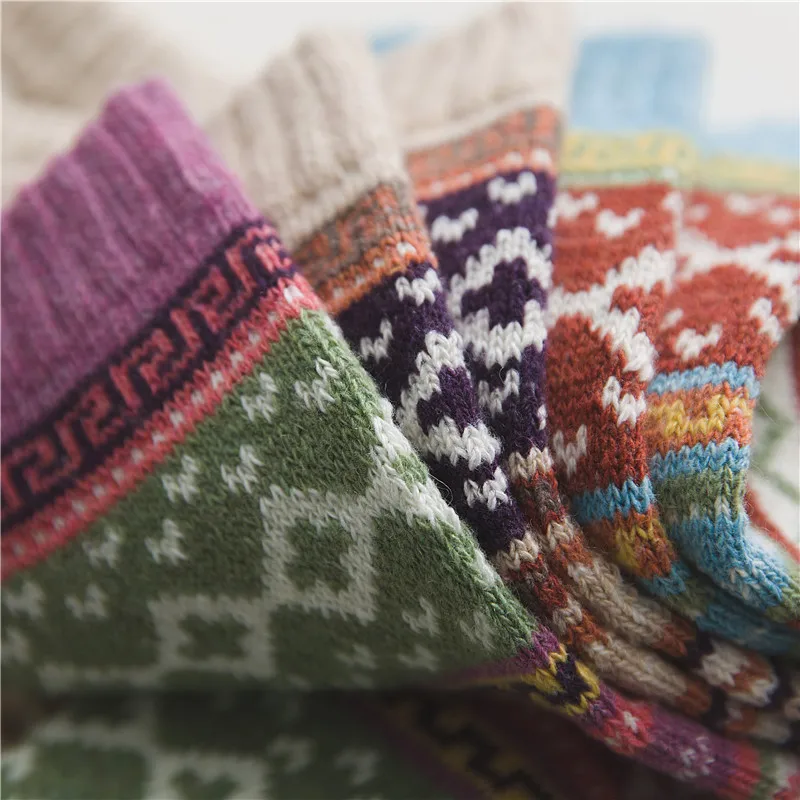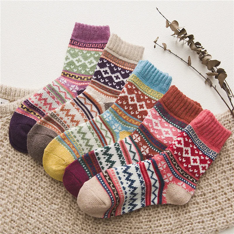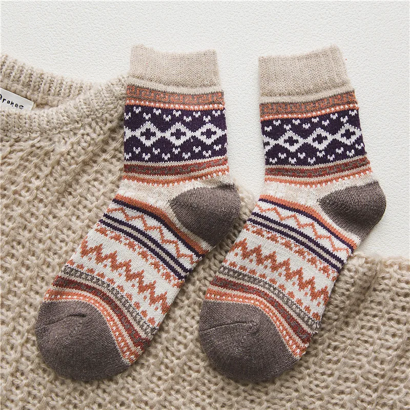 5 партлот новые толстые теплые женские винтажные носки Witner цветные носки подарок модные женские носки