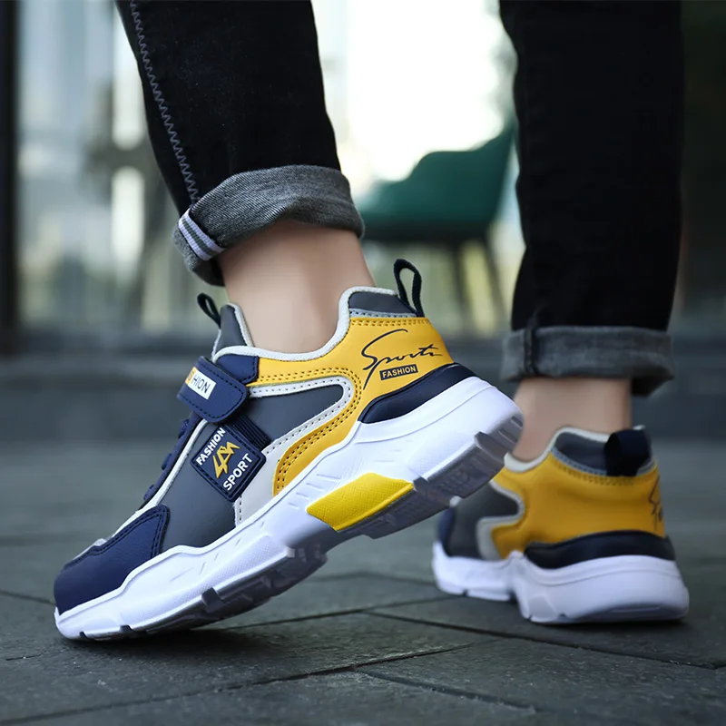 Кроссовки детские из ПУ кожи, модная спортивная обувь, повседневные дышащие легкие, для бега и тенниса