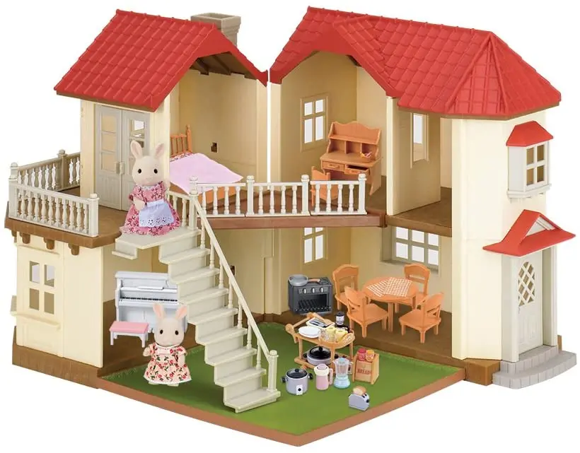 Подарочный набор Red Roof для загородного дома, большой Семейный комплект с красной крышей Hopscotch Rabbit, включает в себя как фигурки, так и мебель. Этот ценный набор состоит из фигурок и furniturehopscotch Rabbit Girl и Hopscotch Rabbit Mother включает в себя творческие ролевые игры для детей в возрасте от трех лет и старше