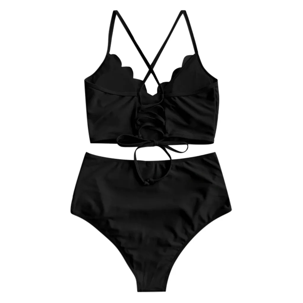 Женский купальник-танкини с зубчатыми краями, перекрещивающимися кр...