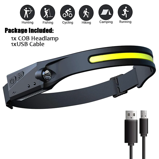 Светодиодный индукционный налобный фонарь COB, встроенный литиевый ...