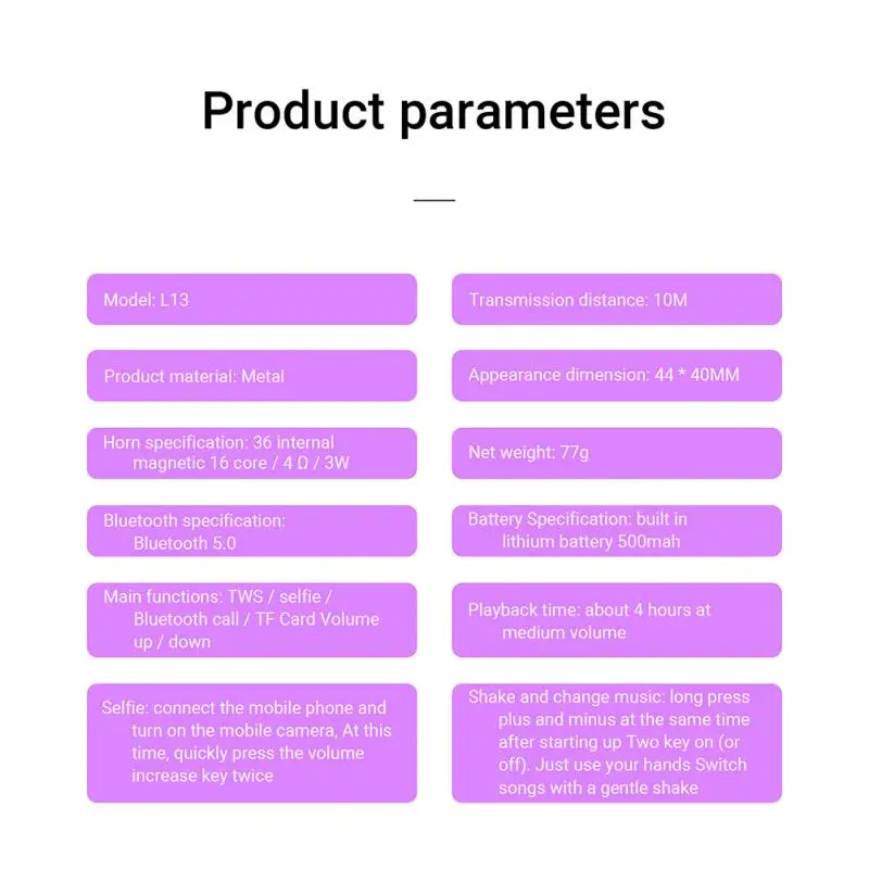 Основные функции: TWS/Selfie/Bluetooth call/TF карта увеличения громкости/уменьшения/вверх и вниз песня