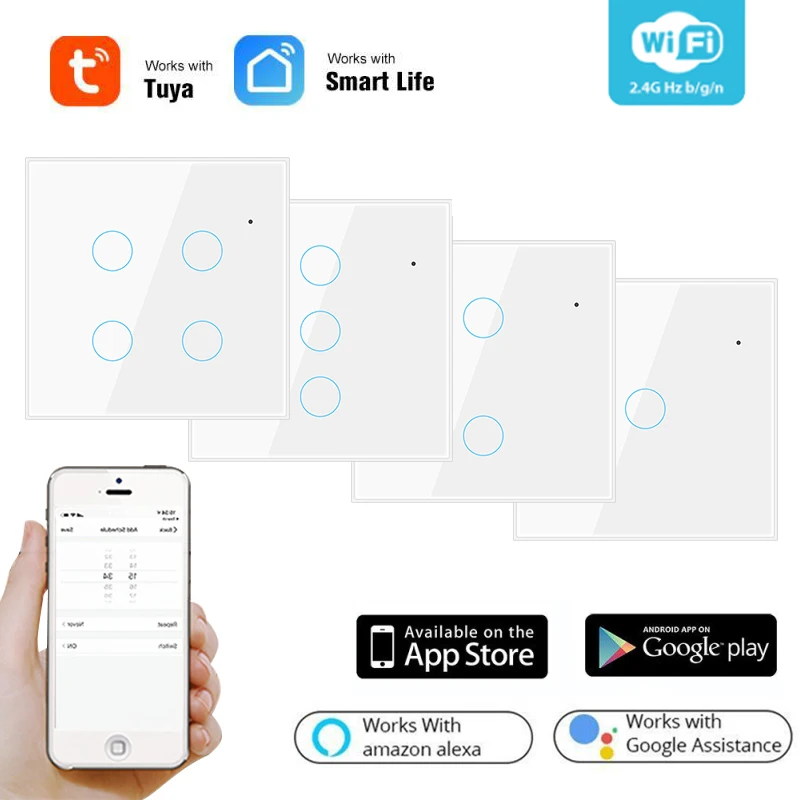 Выключатель настенный сенсорный Универсальный с поддержкой Wi-Fi и AlexaGoogle Home