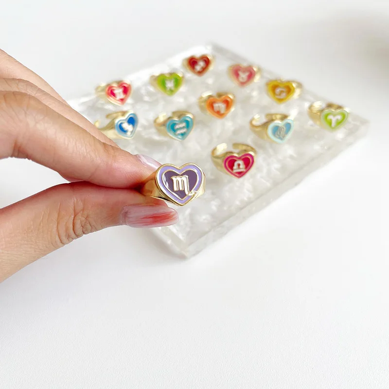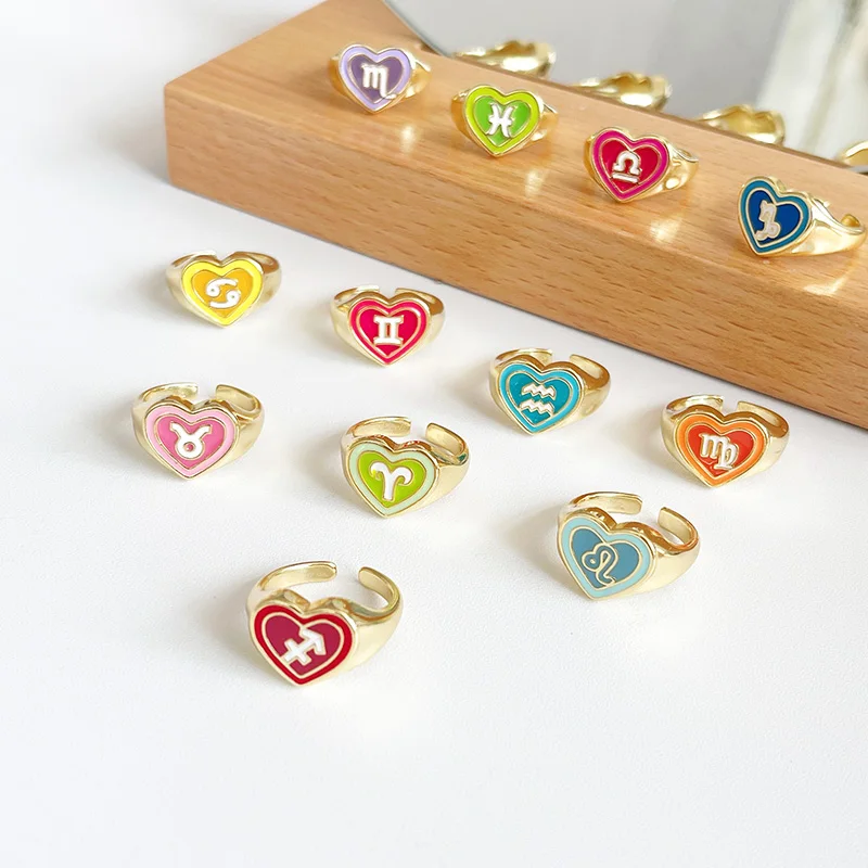 LUBOV Новинка, кольцо с 12 созвездиями в винтажном стиле, красочное, с двойным любовным сердцем, для женщин и девушек, Модная бижутерия, подарок