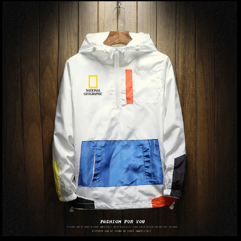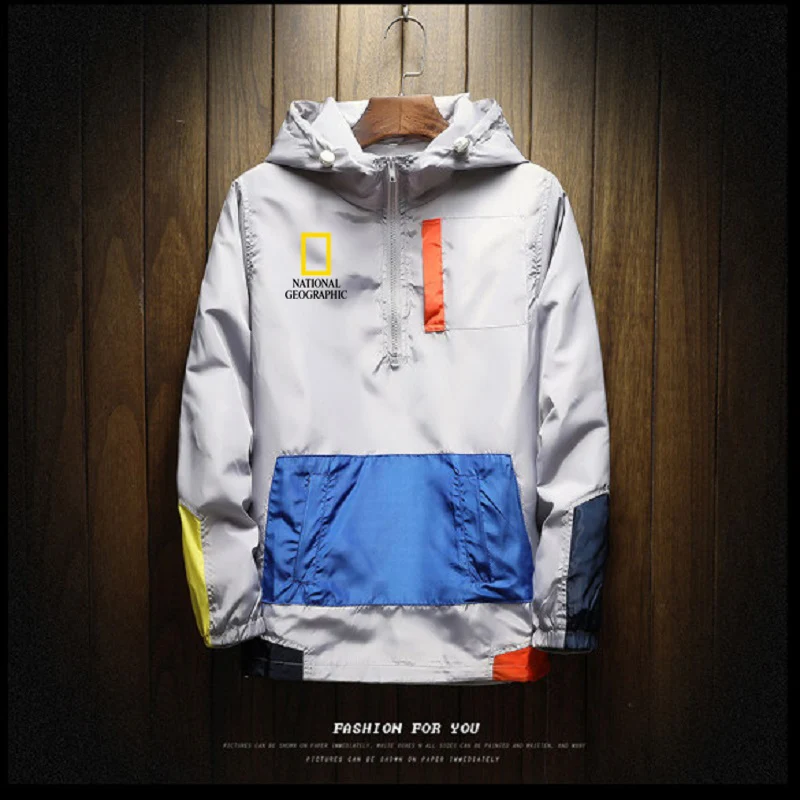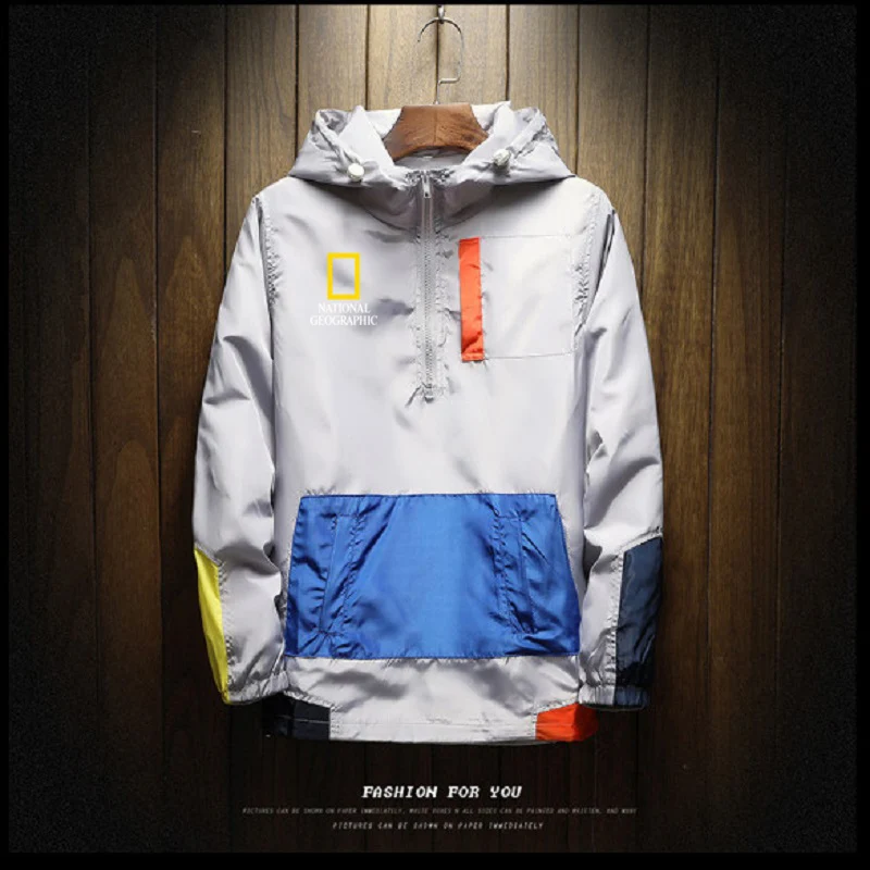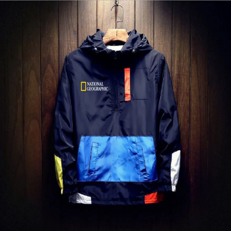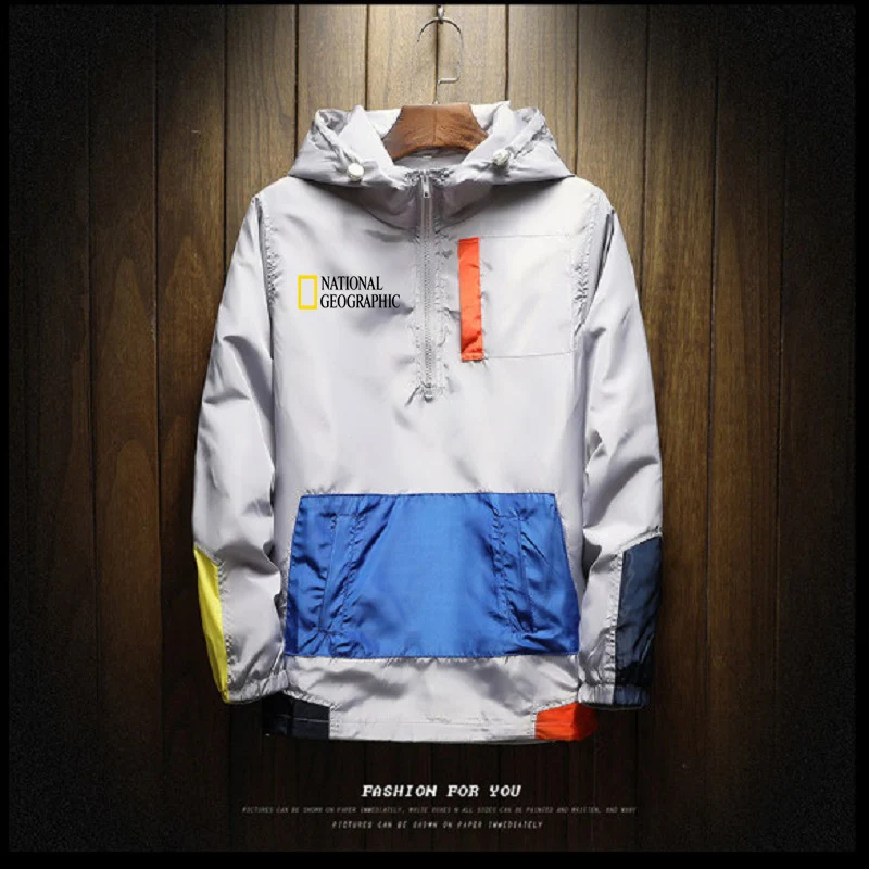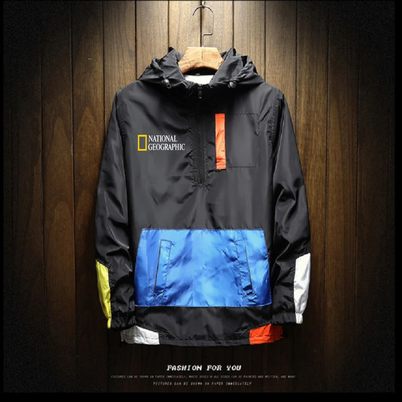 Мужская повседневная куртка с капюшоном и молнией, в стиле пэчворк