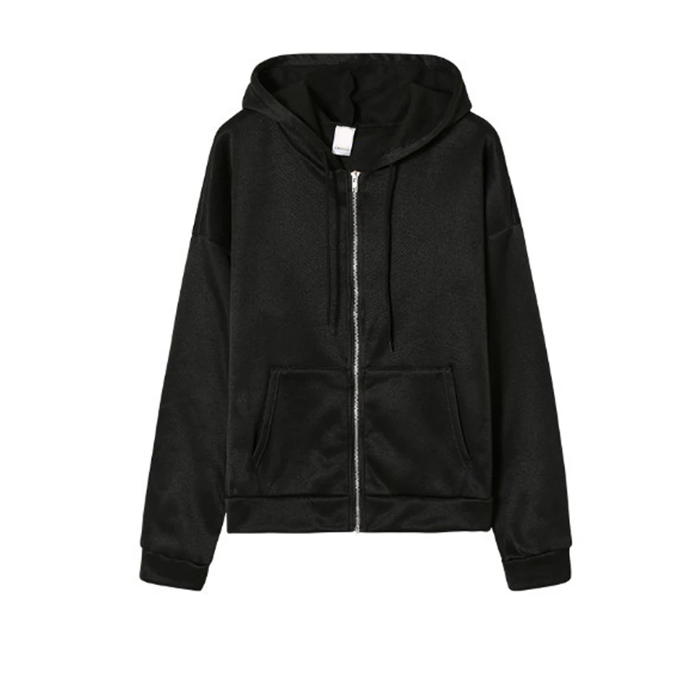 Осенняя флисовая толстовка с капюшоном, однотонная корейская модная толстовка с капюшоном, топ с длинными рукавами и карманами на завязках, свободные черные толстовки на молнии