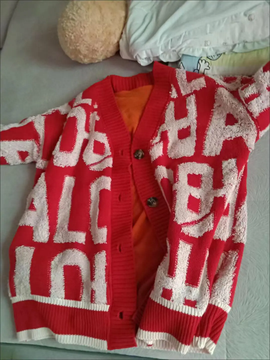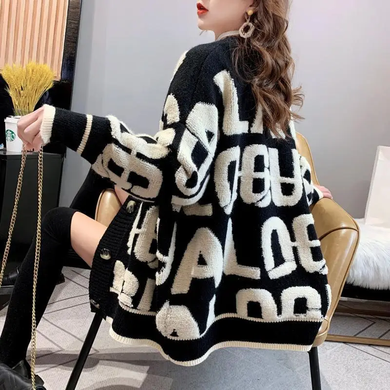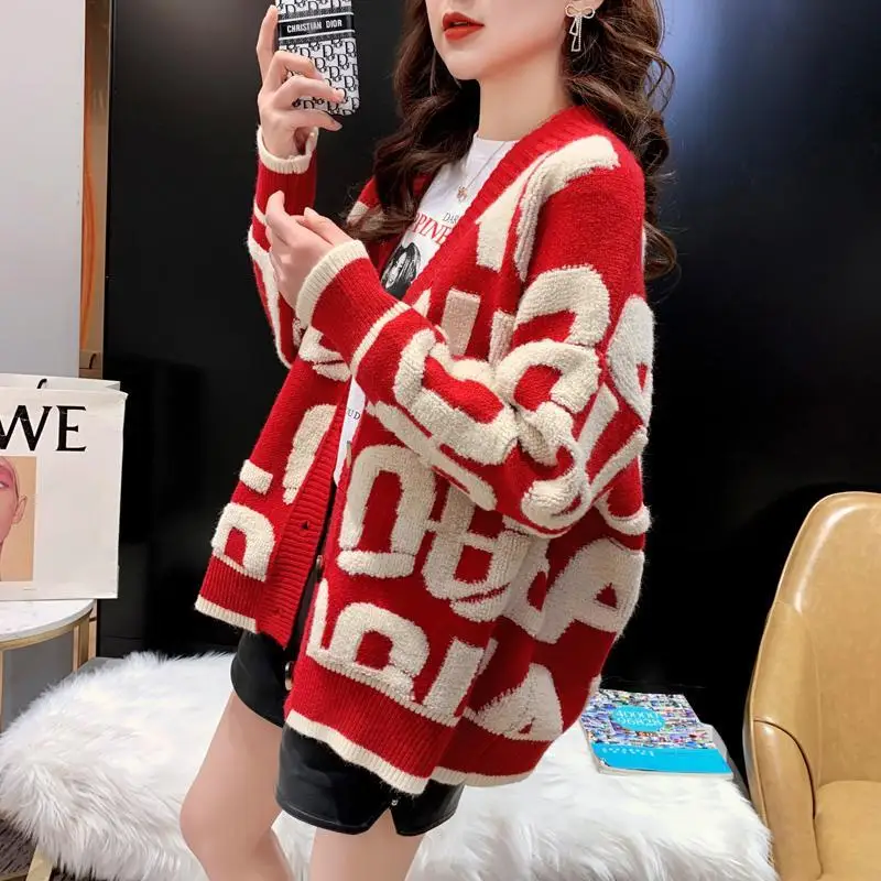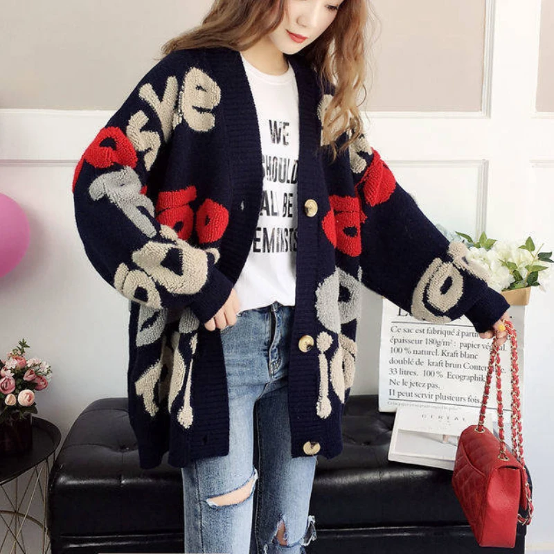 Зимний женский кардиган, свитер, пальто, новинка 2021, утепленный милый кардиган с V-образным вырезом и мультяшной вышивкой, Женская куртка