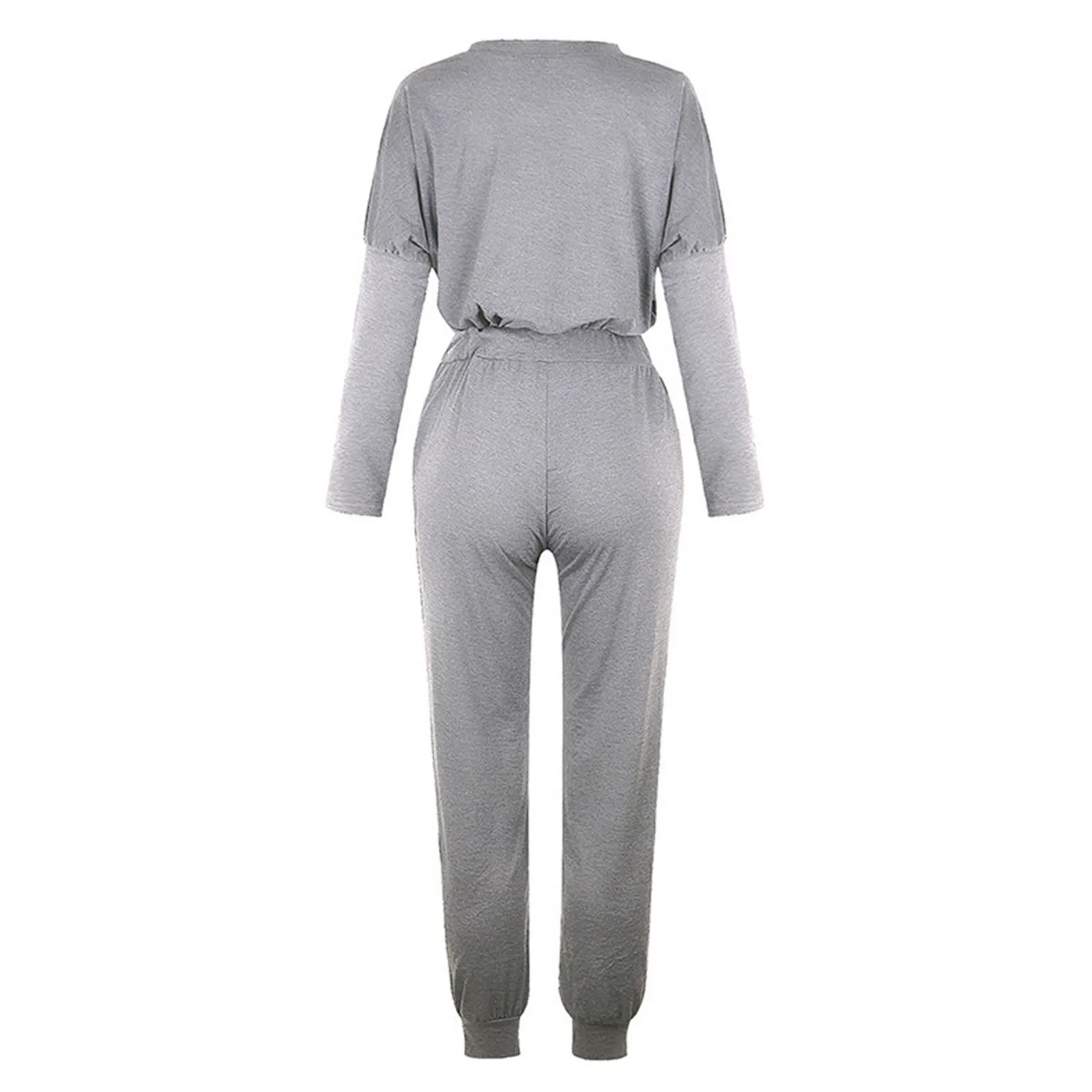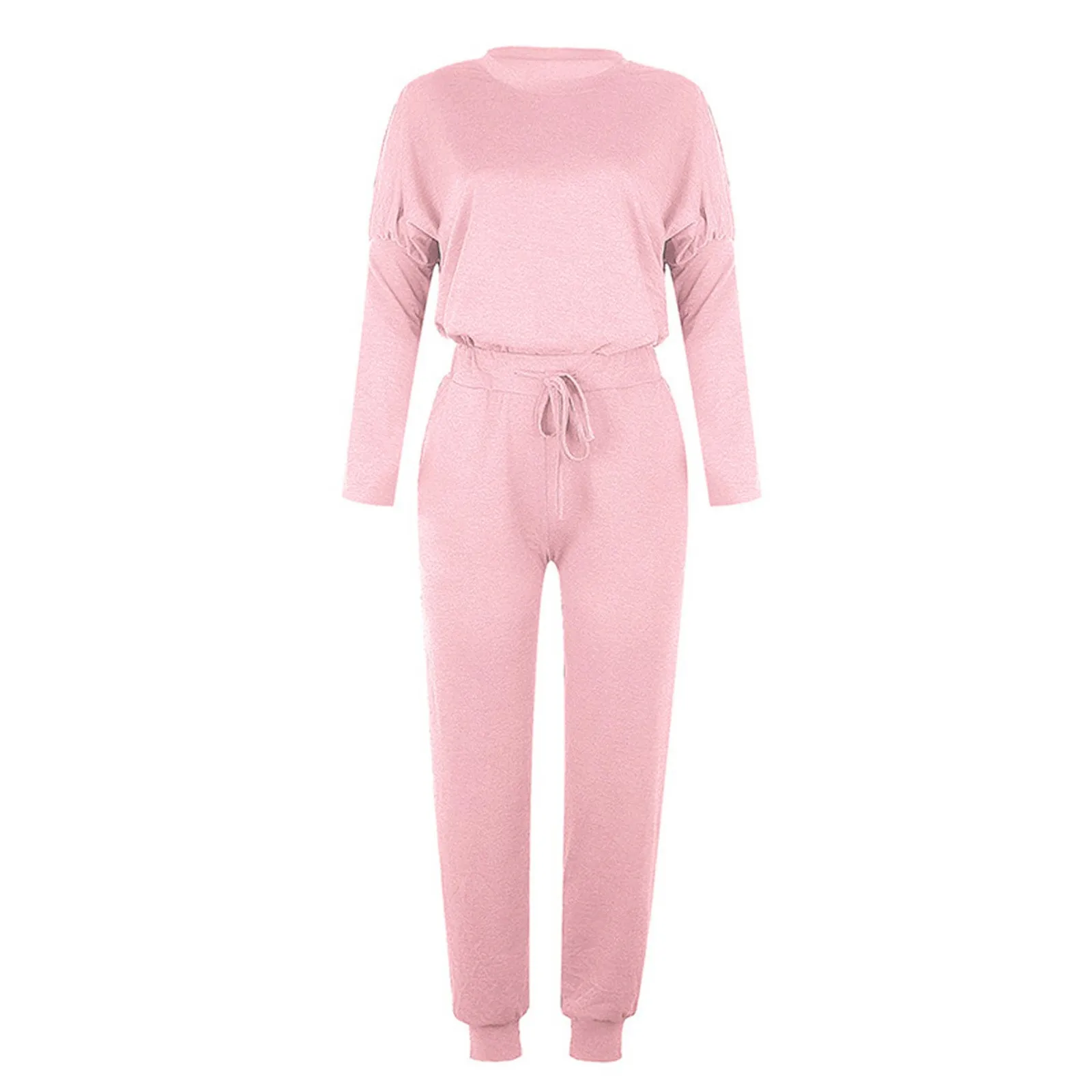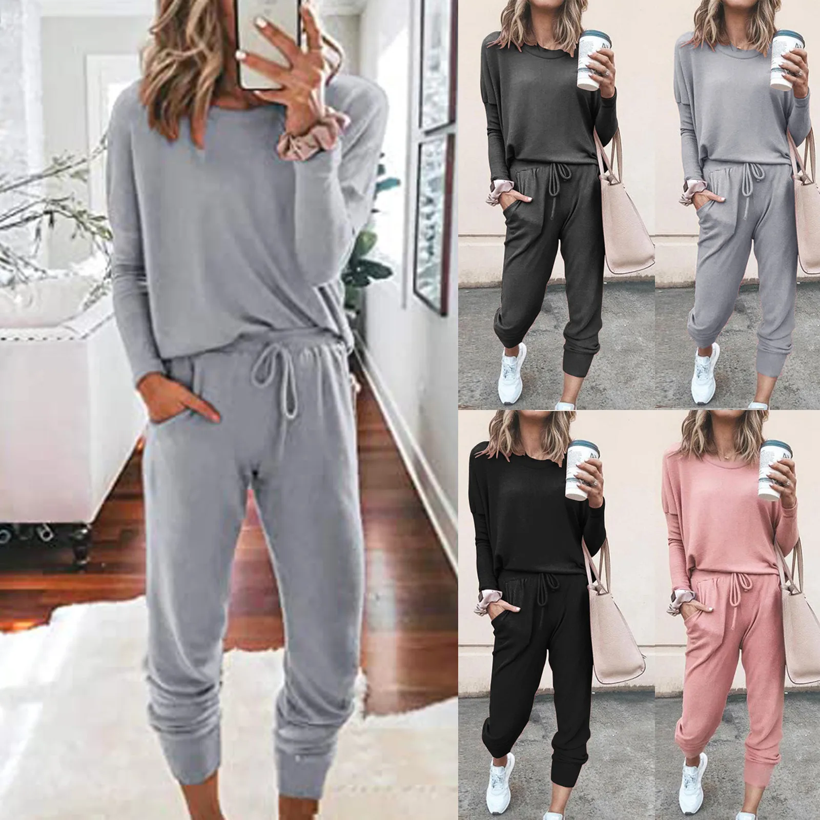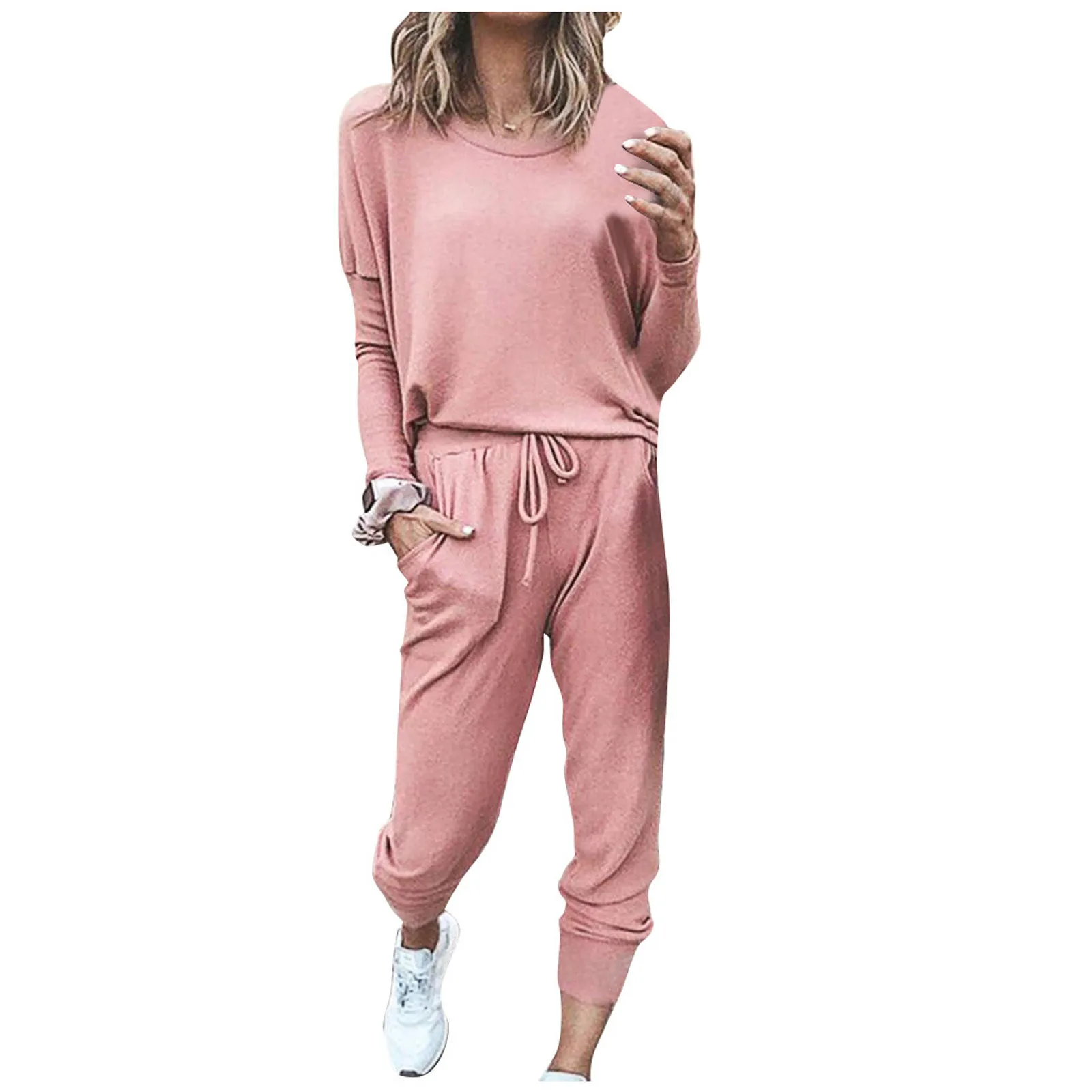 2022 горячая Распродажа Женская мода свободная Однотонная футболка с длинным рукавом Брюки Повседневный Спортивный костюм весна и осень две плоские