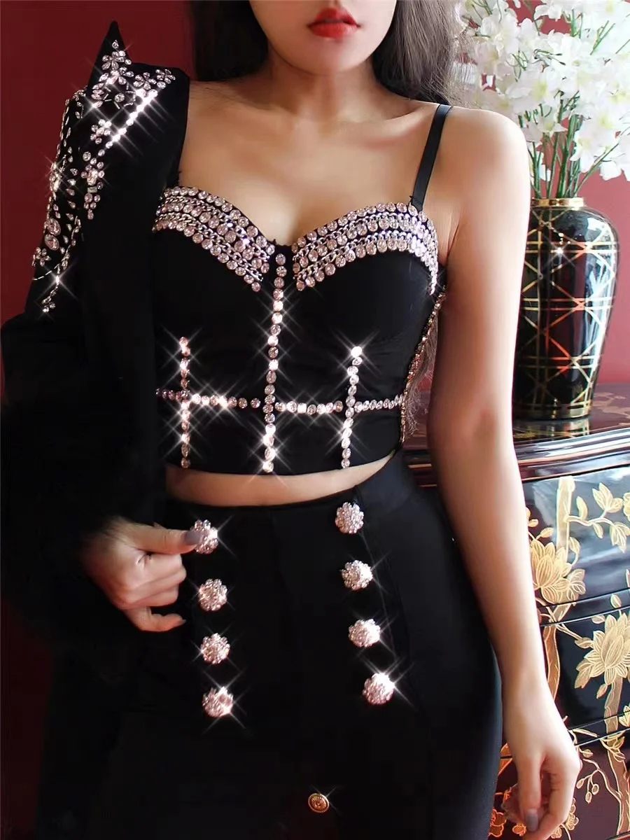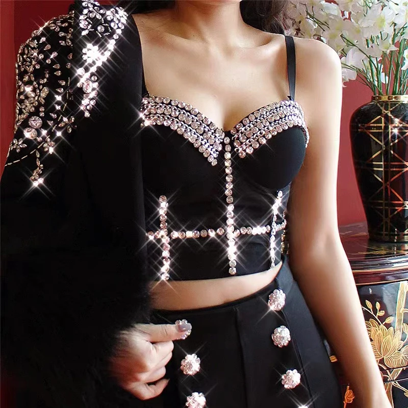 Новый сексуальный женский корсет, топ, бюстье, укороченный бюстье без рукавов, с открытой спиной, бюстгальтер со стразами, блестящая одежда для фестиваля, выпускного, сцены