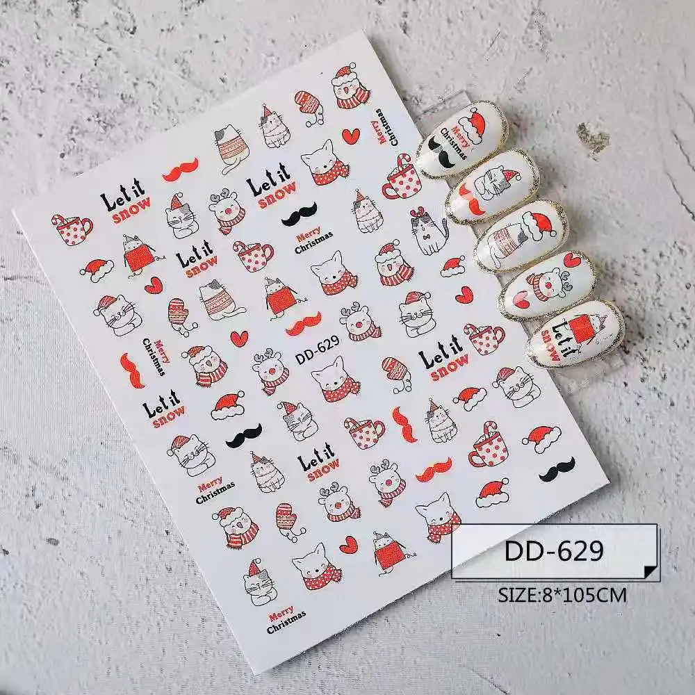 Наклейки для ногтей Рождество, наклейки для ногтей, наклейки для ногтей зима, рельефные 5D наклейки для ногтей, милые наклейки для ногтей