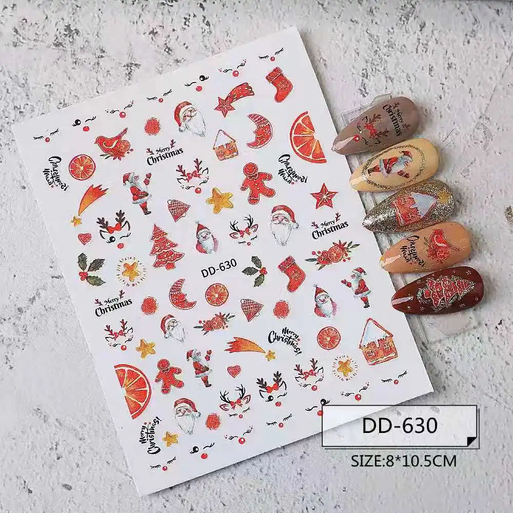 1 лист 5D рождественские наклейки для ногтей, 5D акриловые Выгравированные наклейки для ногтей Санта, рождественские наклейки для ногтей, наклейки для ногтей