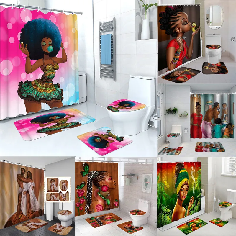 Комплект водонепроницаемых штор для душа для купания, нескользящий коврик для ванной комнаты для девочек из Африки, ковер, чехол для сиденья унитаза, моющаяся ткань из полиэстера