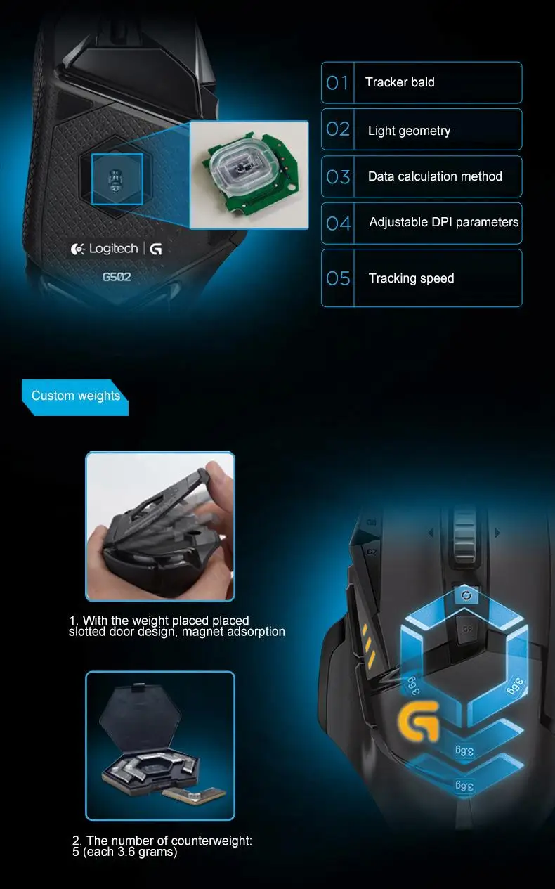 Оригинал Logitech G502 Hero juego de alto rendimiento ratón Hero motor con 16.000 DPI luz регулируемые программируемые sincronizatio