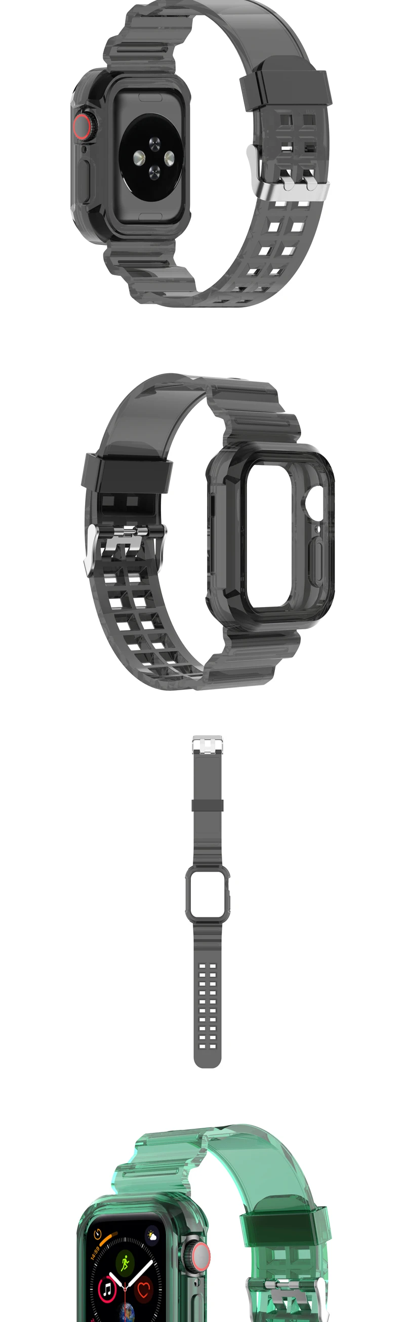 Чехол и ремешок для Apple Watch Band 38 мм40 мм41 мм 45 мм 44 мм 42 мм, мягкий силиконовый прозрачный браслет, аксессуары для смарт-часов iWatch SE 7