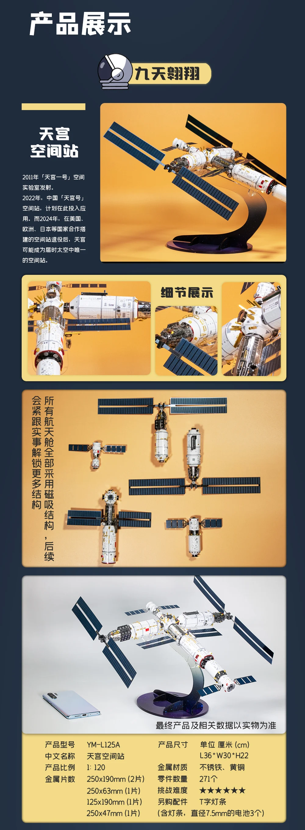 Художественная модель MU, 3D металлический пазл, китайская космическая станция, наборы моделей сделай сам, 3D лазерная вырезка, сборка, головоломки, игрушки, подарок для детей