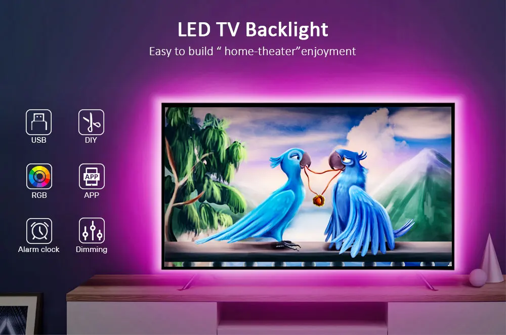 Подсветка телевизора украшает ваш телевизор разноцветными и имеет различные режимы на выбор