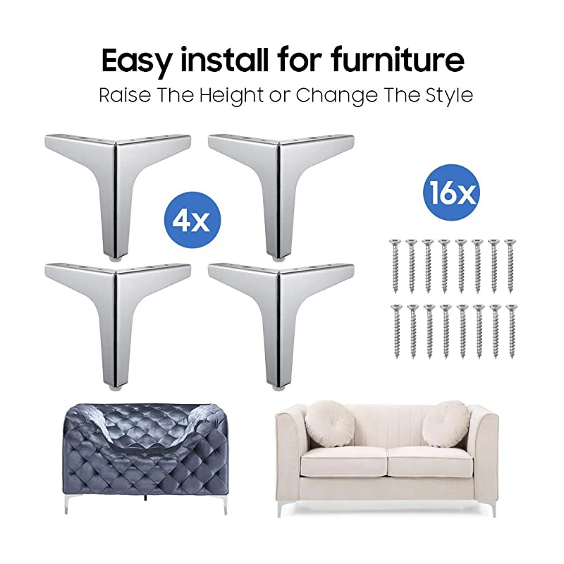Металлические ножки для мебели, серебристые треугольные ножки для шкафа, дивана, кровати, стола, фурнитура, 4 шт.