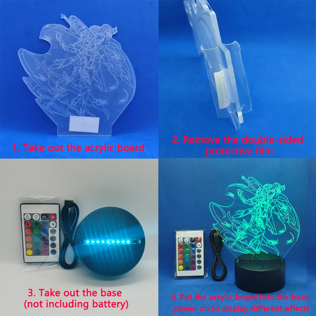 Основные характеристики:Change 7 цветов: красный, зеленый, синий, желтый, голубой, фиолетовый и белыйTouch режим касания: пожалуйста, нажмите кнопку касания один раз, чтобы изменить один цвет, если Нажмите 8 раз, цвета будут изменены автоматически. Удерживайте переключатель вниз в течение 2 секунд, чтобы выключить.Mode режим дистанционного управления: пульт дистанционного управления с включением/выключением, 16 цветов, регулируемая яркость, режим вспышки, плавный режим.Обратите внимание:● Перед использованием снимите защитную пленку.● Чтобы не оставлять отпечатков пальцев на поверхности акриловой панели, пожалуйста, держите доску только на кромке, а не спереди.Чтобы получить потрясающий ночной Светильник 3D illusion, нажмите кнопку «Добавить в корзину».Настоящая вещь намного лучше, чем на фотографиях!Настоящая вещь намного лучше, чем на фотографиях!Настоящая вещь намного лучше, чем на фотографиях!