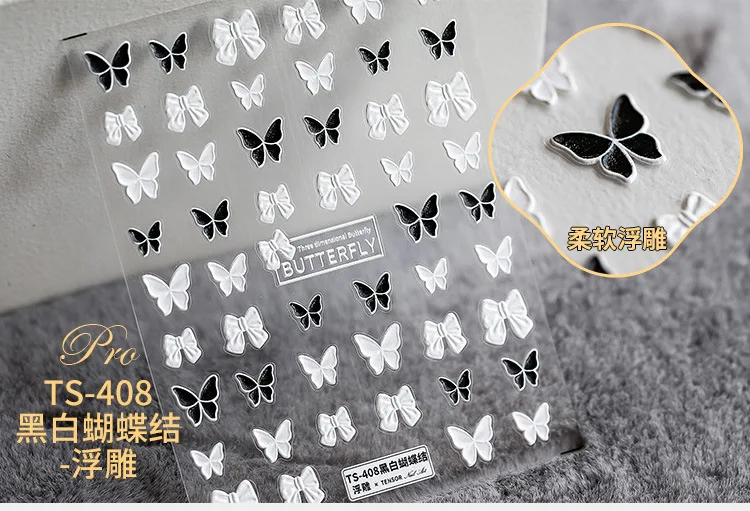 5D новые мягкие тисненые наклейки для ногтей в виде бабочек, снежин...