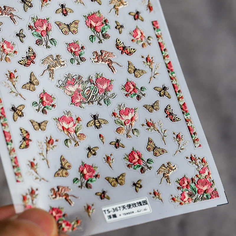 Красочные наклейки для ногтей в виде бабочек и роз, 5D тисненые мат...