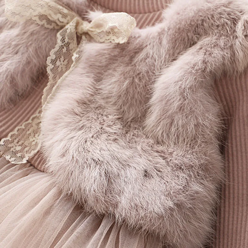 Платье для девочек, теплые зимние платья с мехом на Рождество и осе...