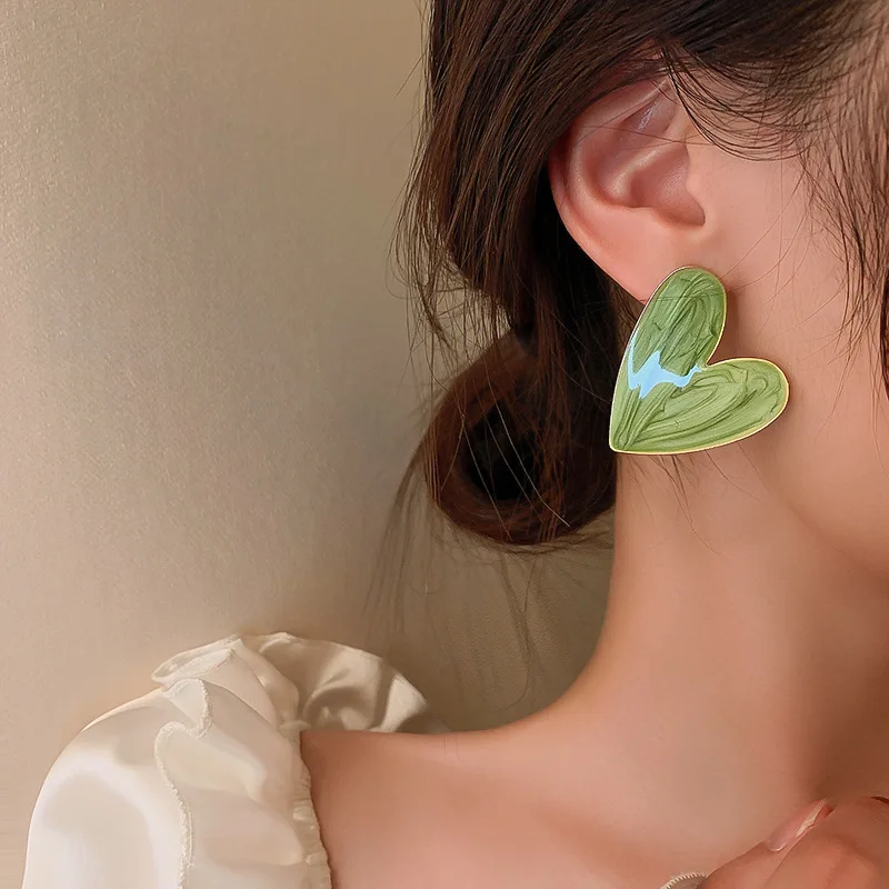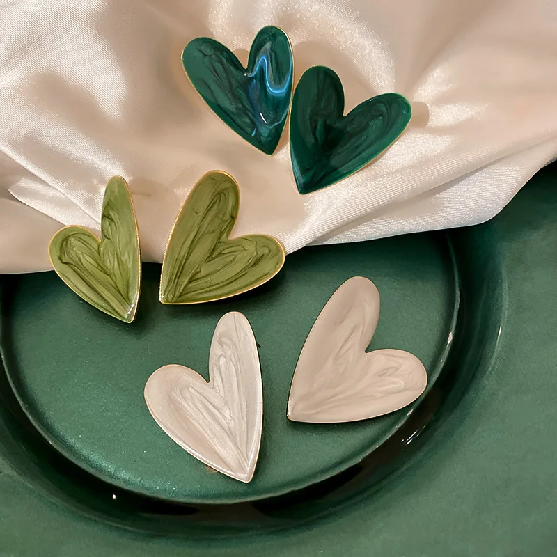 Корейские зеленые и белые серьги-капли в форме сердца для женщин, б...
