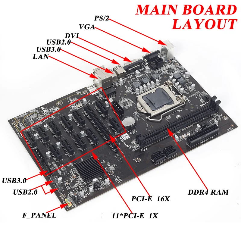 Материнская плата B250 12p-BTC для ЦП, разъем LGA 1151 PCI-E 16X, графический слот SATA 3,0, USB 3,0 для майнинга биткоинов, BTC, ETH, GPU