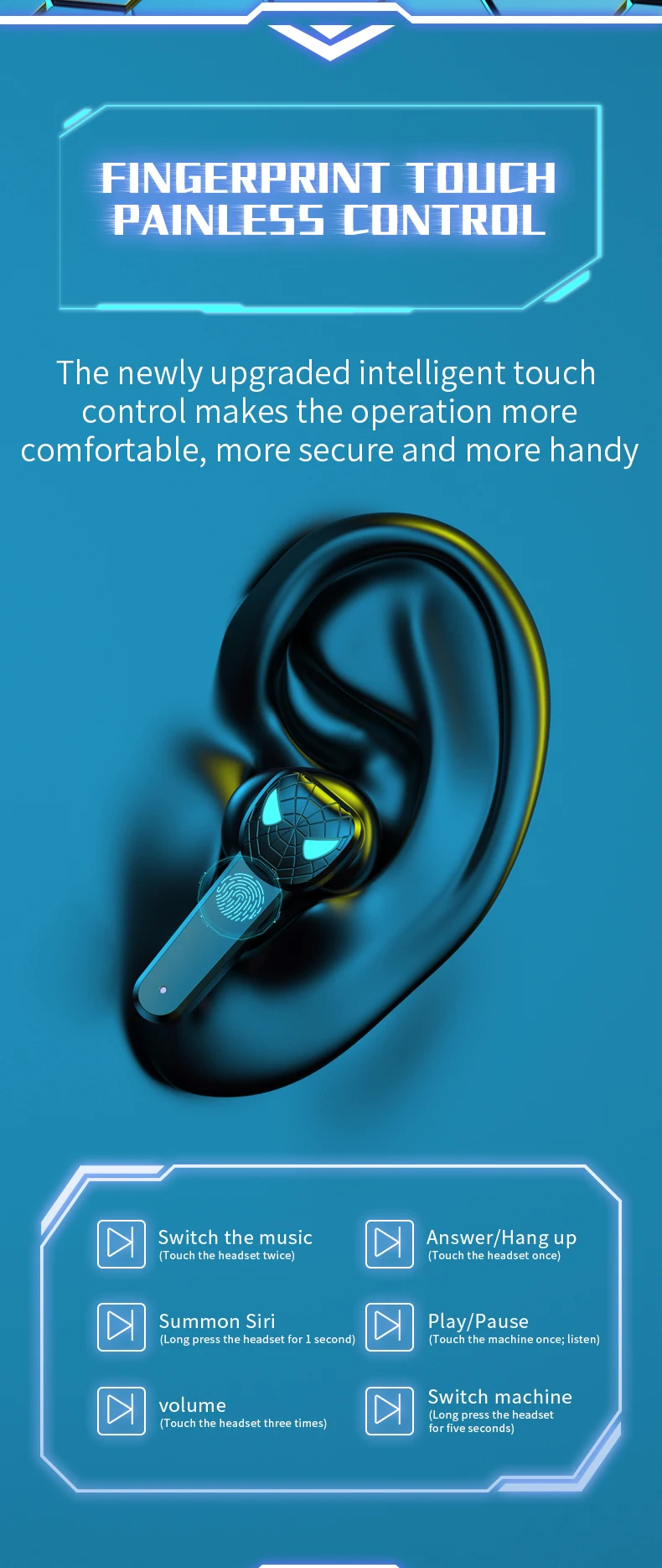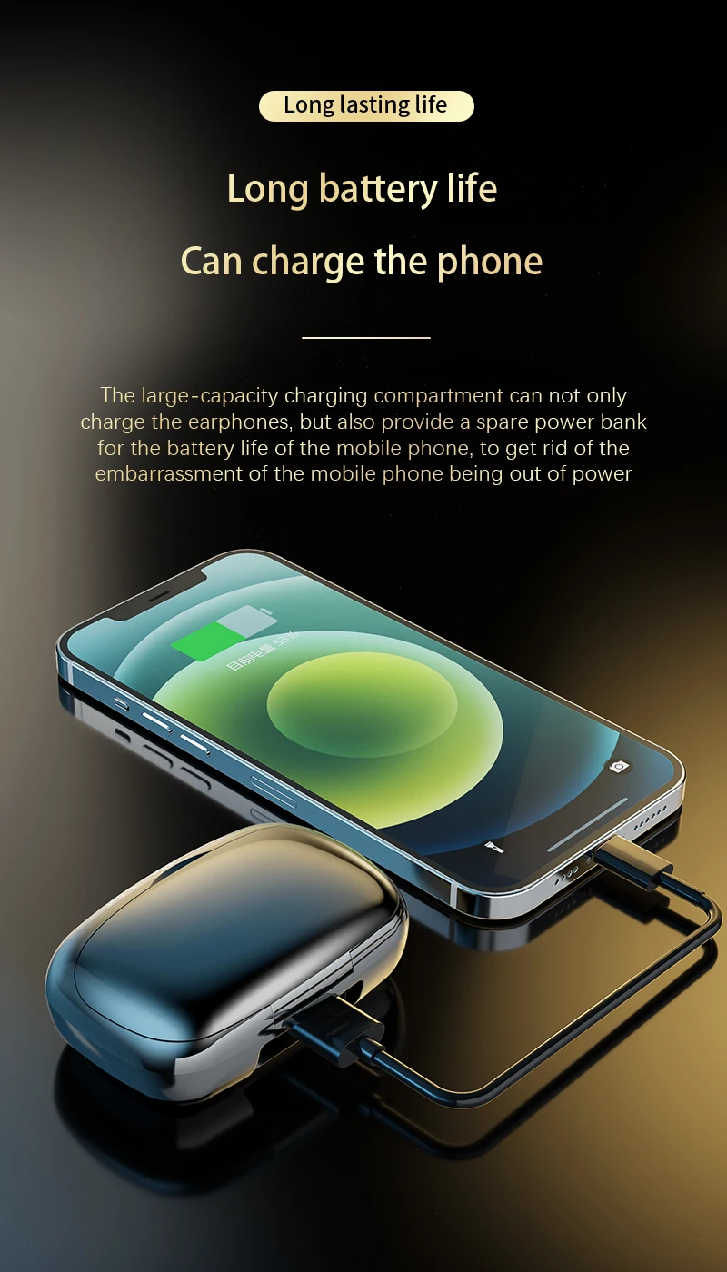 Беспроводные наушники TWS, быстрая зарядка, сенсорный экран, водонепроницаемый, светодиодный дисплей, 9D стерео, Bluetooth 5,2, зарядная коробка на 2200 мАч
