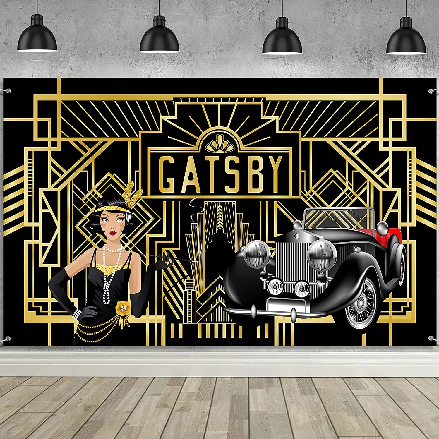 Фон для фотосъемки в стиле 1920-х годов с изображением черного и золотого Ростов 20-х Гэтсби, фон для вечеринки в честь Дня Рождения, для свадебного искусства, винтажный Джаз для танцев
