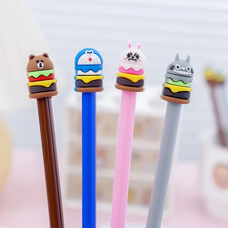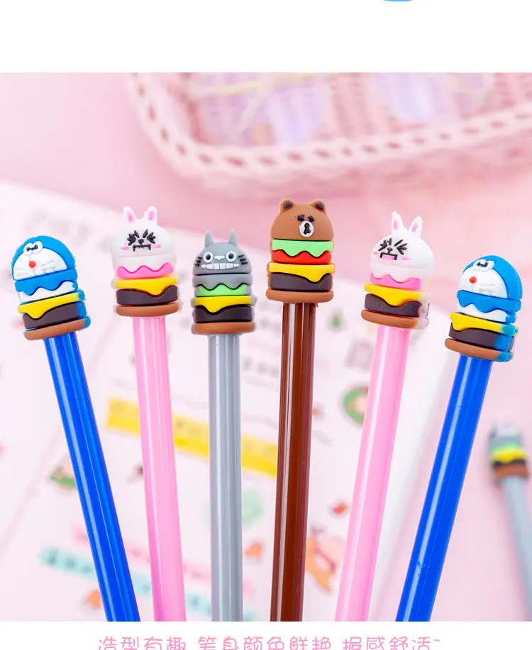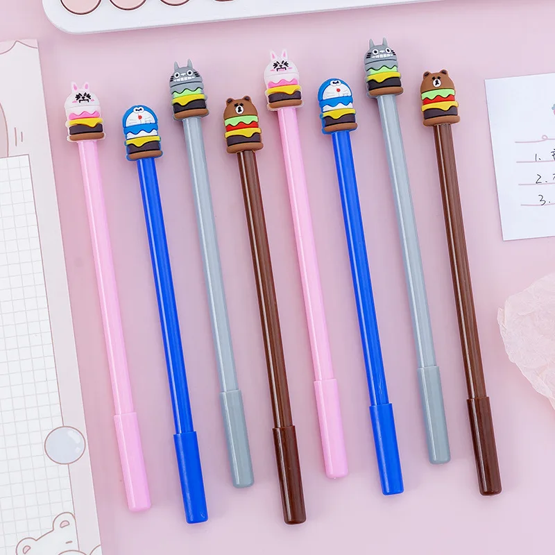 1 шт. канцелярские принадлежности, милый мультяшный кролик, торт, гамбургер, нейтральная ручка, Студенческая ручка с черным сердечником