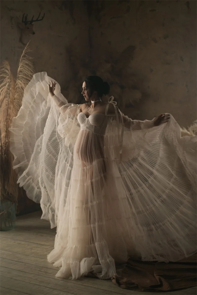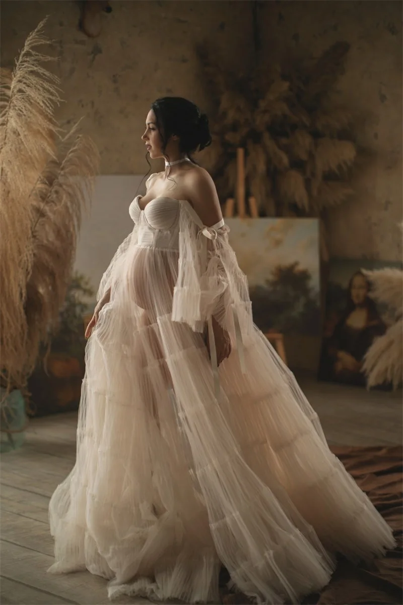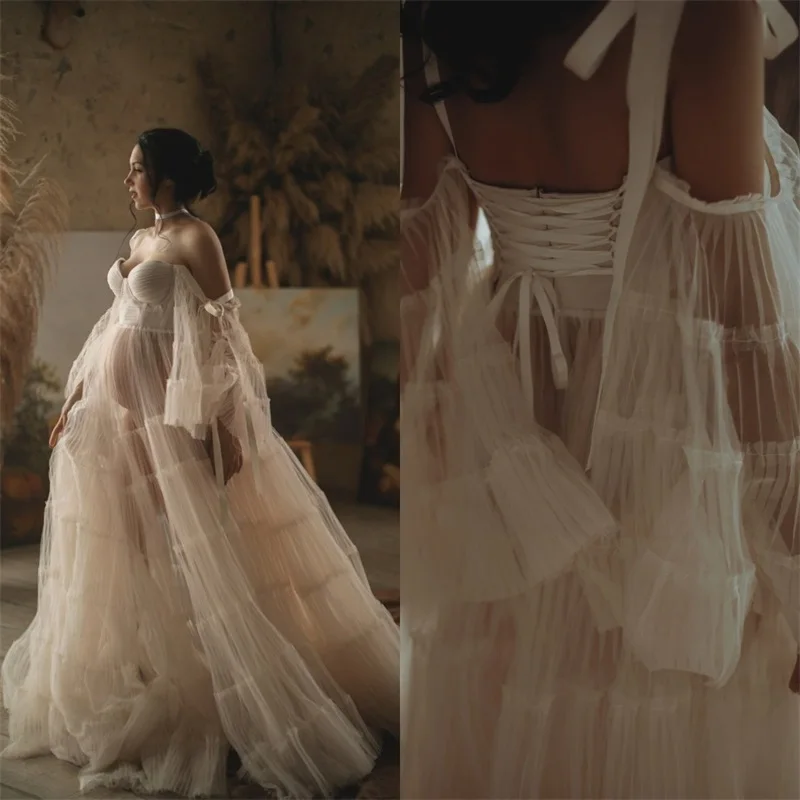 Платья для беременных цвета слоновой кости для фотосессии с открытыми плечами ночная рубашка с длинными рукавами для фотосъемки беременности Женская одежда для сна на заказ