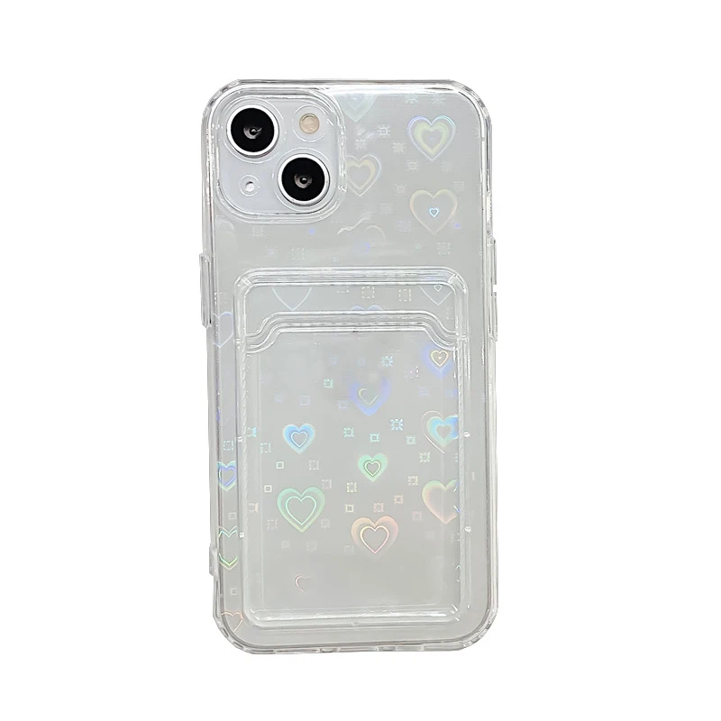 Прозрачный цветной лазерный кошелек с сердечками для IPhone 13, 12,...