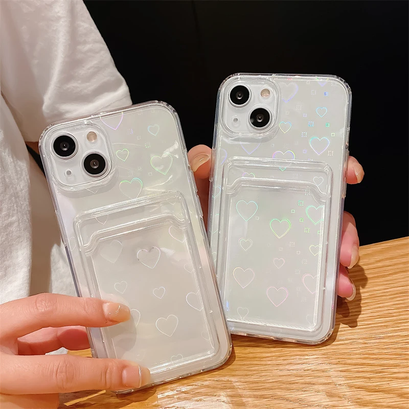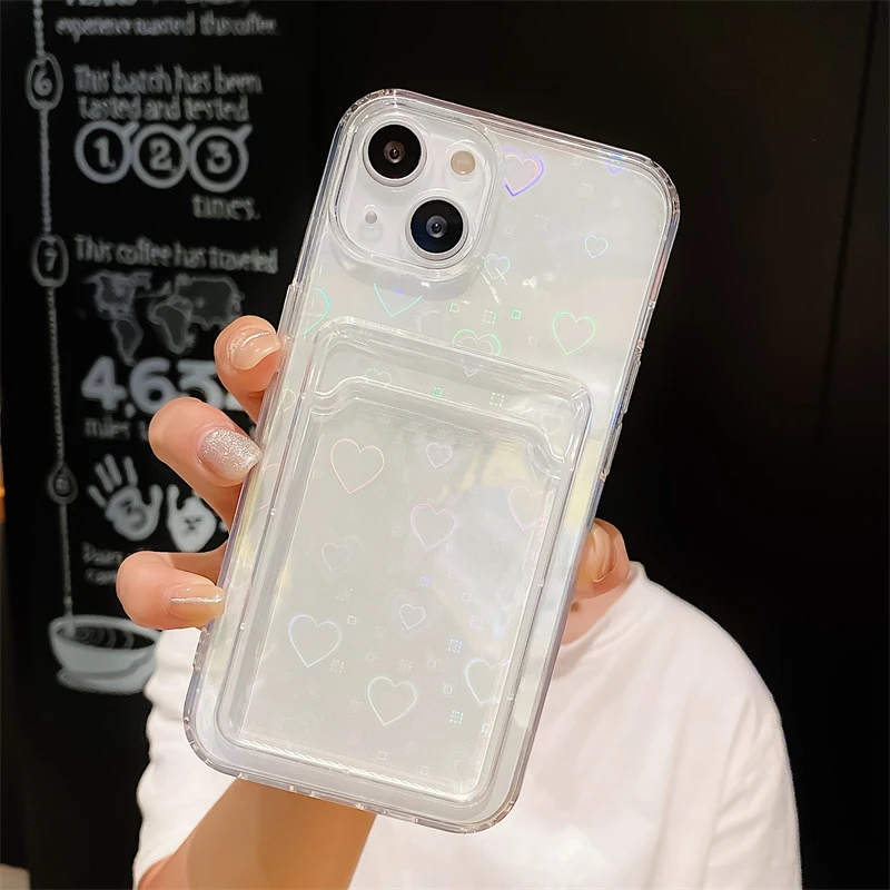 Мягкий прозрачный чехол из ТПУ для Apple iPhone 13, 12, 11 pro max, Обложка ProMax, лазерное сердце, полная защита, задняя крышка с карманом для карт, Прямая поставка