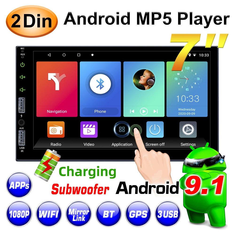 Автомобильное радио, 2DIN, 7 дюймов, Android 9,1, двойное USB-радио...